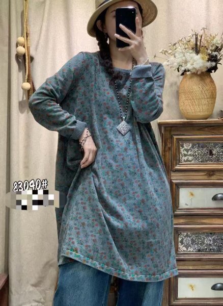 mn 2510 ニット セーター チュニック トップス ゆったり 綿100% ナチュラル 花柄10