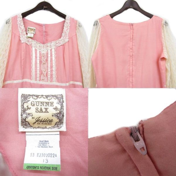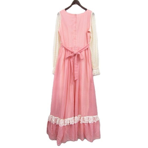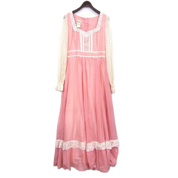 70s~ サイズ 13 GUNNESAX ドレス ワンピース ピンク レース ガニーサックス ガンネサックス 古着 ビンテージ 5O0803