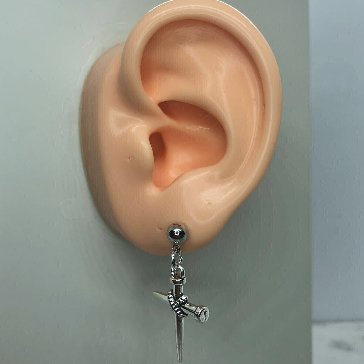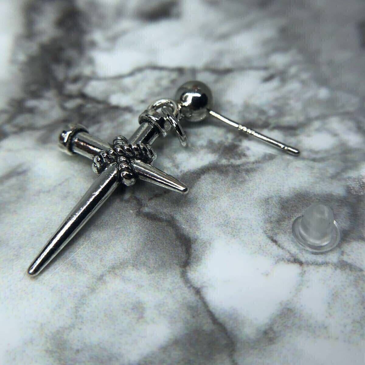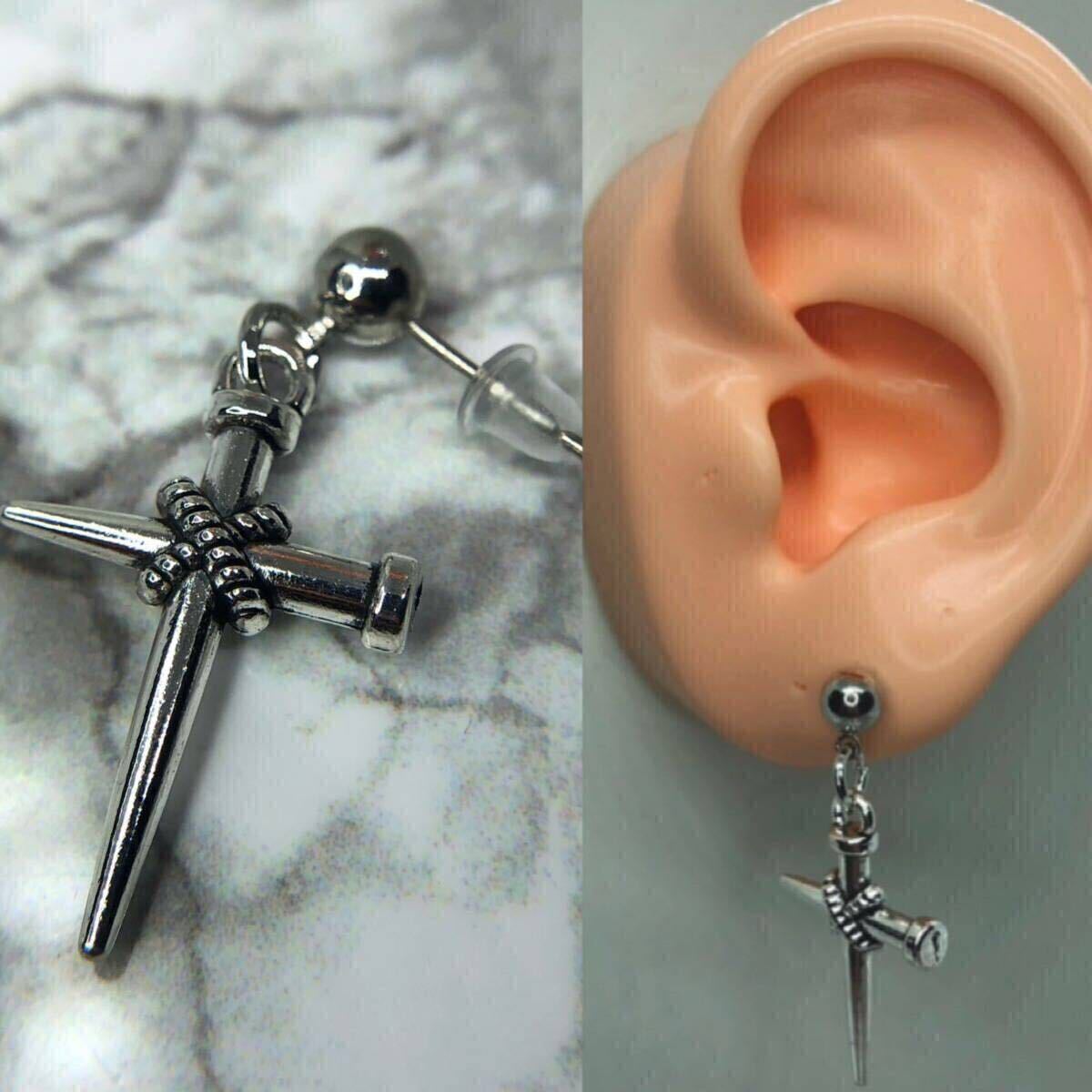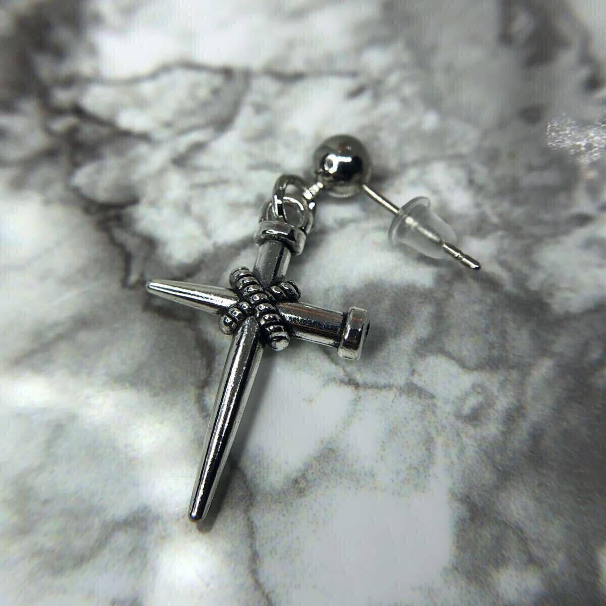 【新品】スタッド ピアス 18gドロップ 十字架 クロス 釘 シルバー ボール メンズ 韓国 片耳