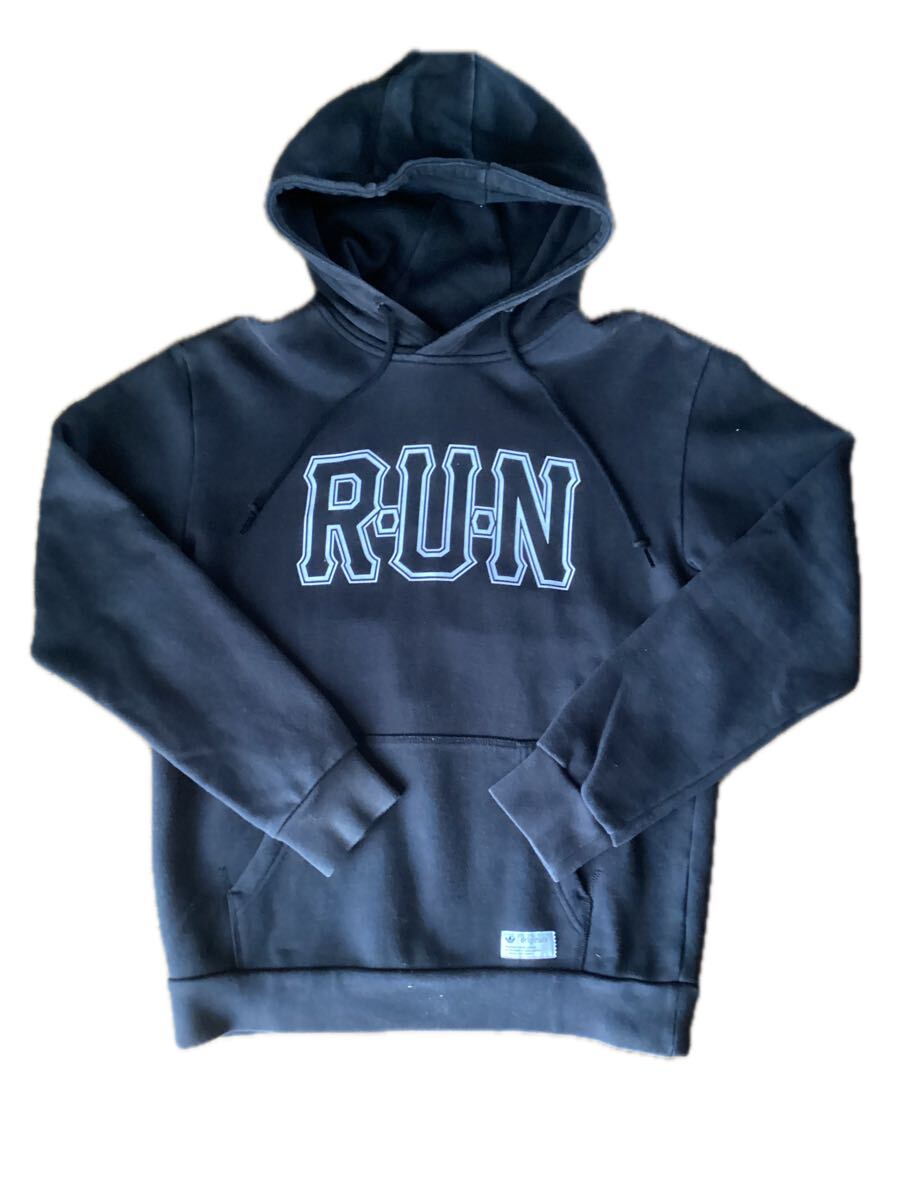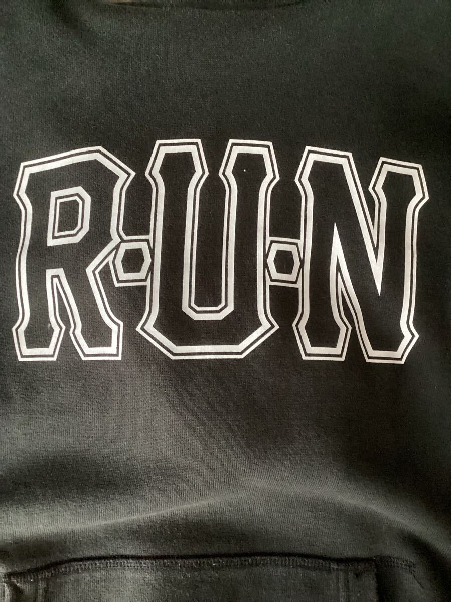 胸元に立体的なRUNプリントを施した、存在感あるストリートスタイルの一着。裏起毛仕様で保温性も高く、秋冬シーズンに最適です。