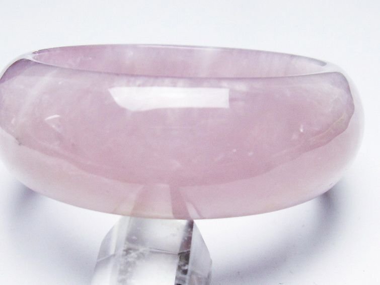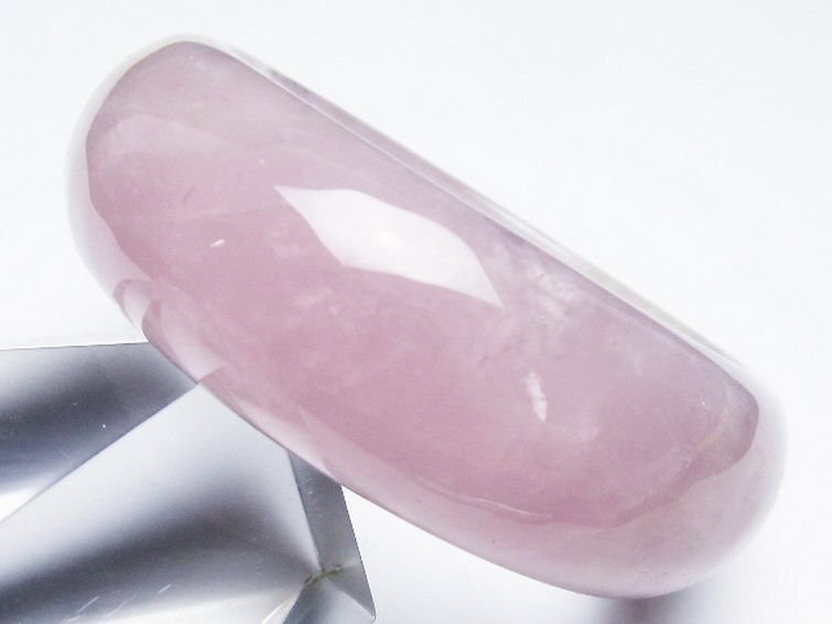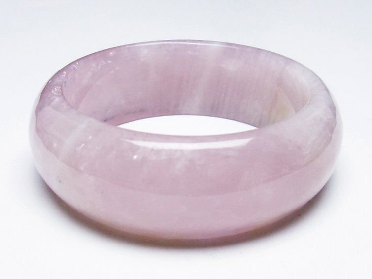 ■商品名: ローズクォーツバングル ■商品ID: T492-3720 ■商品重量:約 97.4g ■商品サイズ:内径約:59mm 外径約:78mm 【ローズクォーツ(紅石英)】 ローズクォーツは柔らかい優しいピンクの水晶です。アルミニウムや酸化チタンなどの結晶を含むためにピンク色になると考えられています。これらの微細な結晶が分散しているため、石全体の透明度が低く、濁っていたりひびがあります。高品質の透き通ったものや、スター効果が確認できるものは珍重されています。 この石は愛や優しさ、内面美を象徴する石です。ローズクォーツと言うと「恋愛運アップ!」といったイメージが一般的ではないでしょうか。 ローズクォーツは持ち主の内面の美を高め、女性の幸せや喜び、愛を呼び起こしてくれるとされています。また過去の傷ついた経験から、ついネガティブ思考になったり自分に対してマイナス思考になったりするような、負の感情を優しさで包み込み癒し、自分を許し愛せるようになるそうです。 この石は目当ての異性を連れてくるというよりは、内面的に美しくなり自分を良い意味で大切にする自己愛を知ることにより他者から愛されるという効果のようです。例えば自分なんか大嫌い、自分なんかどうせ、と思っている時に、他人から愛されるでしょうか。それよりも自分を認めて受け入れ、愛していると内面が輝いて魅力が溢れます。その魅力により周囲の人から愛され、他人から愛されることにより一層他人を愛せるようになるという、愛を呼び込む循環を造ってくれるそうです。 そういった意味で、実は恋愛運アップというよりはもっと定義の広い愛情運アップの効果があるとされています。 こういった広い意味での愛を得ることができるとされ、人に対して思いやりを持ち許せるようになることから、人間関係の改善や、苦手だけれどどうしても付き合わなければならない人がいるといった場合でも活躍してくれることでしょう。 【水晶(石英、クリスタルクォーツ)】 水晶とは石英を指しますが、一般的に無色透明のものをクリアクォーツやロッククリスタルと呼んでいます。 水のように美しく透き通ったものが良いと思われがちですが、内部にヒビや他の鉱物などのインクルージョン(内包物)が入っているものがあり、それが天然物の証。また、インクルージョンによって様々な種類に分類され、それぞれ違った印象を与えてくれます。 古くから呪い事に使われてきた水晶に秘められたパワーはとても万能で、あらゆる場面に対応するといわれています。特に邪気を祓う力が強いため、人間関係を円滑にしたり、心身をクリアな状態にしたい場合に最適です。また空間を浄化する作用もあるとされ、インテリアとしても高い人気を誇っています。 石自体に強い自浄作用があり、他のパワーストーンが吸収した負のエネルギーを浄化するといわれています。更にアクセサリーとして他の石と組み合わせる場合、それぞれの石の個性を引き出しバランスを取ってくれる効果があるそうなので、ぜひとも組み込んでおきたいですね。 パワーストーン入門に最適な水晶ですが、愛好家にとってはかなり奥が深く最後に行き着くのもこの石なんだそうです。何もかもを見透かすような透明な水晶には、本当に神秘的なパワーが宿っているのかもしれません。 |