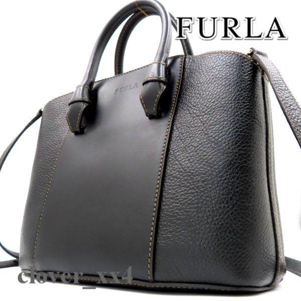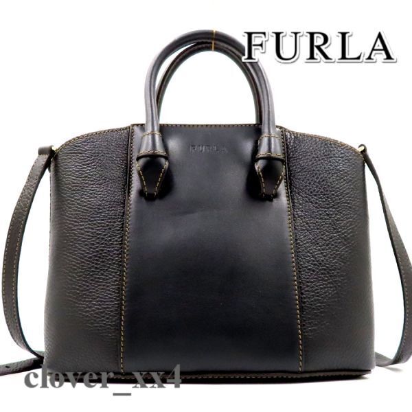 FURLA/ショルダーバッグ/ミアステラ/ブラック/レザー/極美品/中古