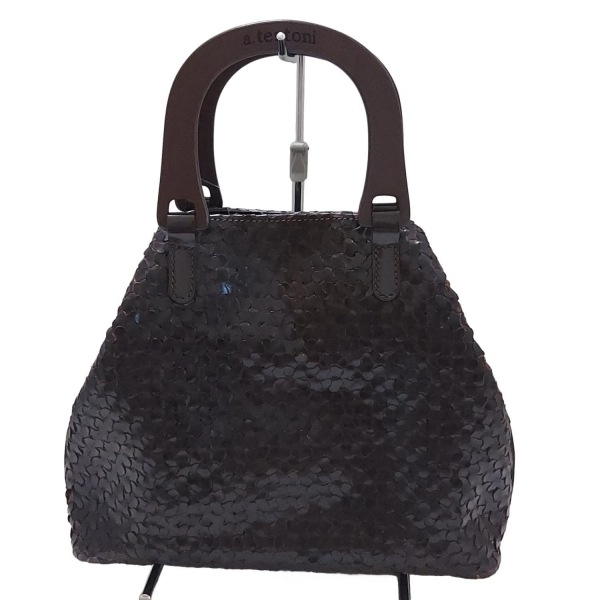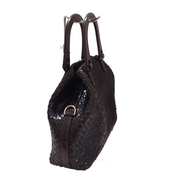 ア・テストーニ a.testoni ハンドバッグ - レザー ダークブラウン 編み込み バッグ