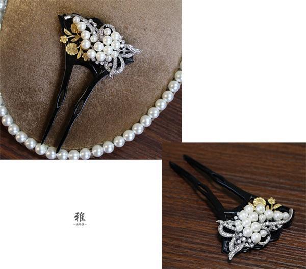 素敵な扇型かんざしに、ボリューム感たっぷりのフェイクパールと、品良く散りばめられた