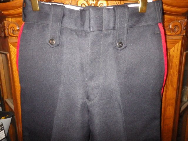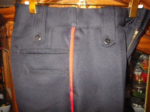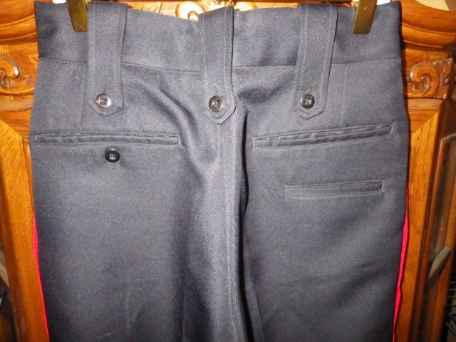 カラーはネイビー(濃紺)×サイドのラインがレッド系、サイズは実寸で、ウエスト:71cm、股下:75cm、もも幅:28cm、すそ幅:22.5cm、サイドの総丈:98.5cmくらい、サラッと肌触りの良いポリウール混、しっかりとした生地感♪