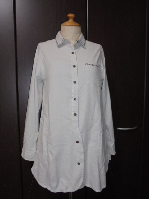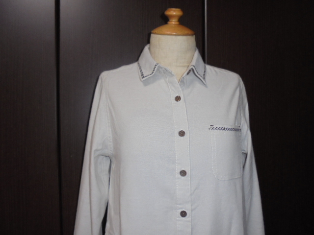 未使用タグ付。衿ポケット口クロスステッチ刺繍シャツ