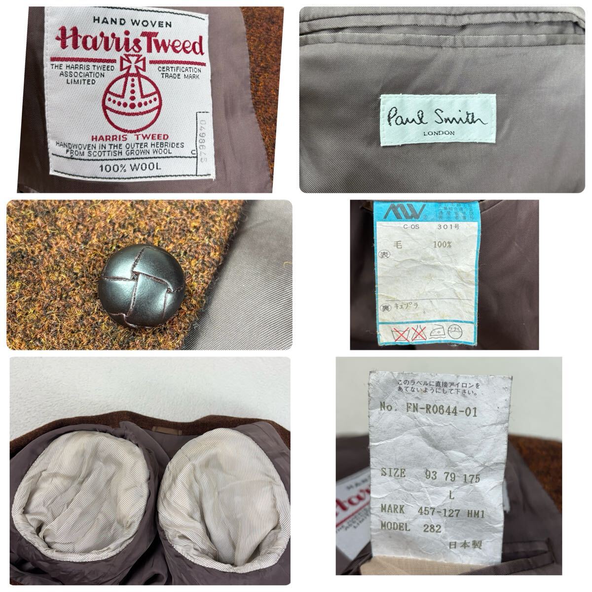 paul smith 【Lサイズ ハリスツイード】ポールスミス テーラードジャケット シングル 英国生地 HARRIS TWEED 日本製 くるみボタン スーツ