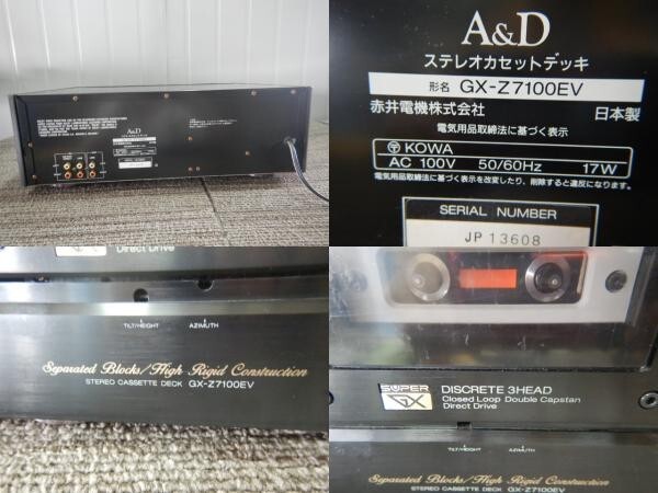 不明な点は質問欄から、お問い合わせください 送料を商品ページの上部に記載しております ご参考にしてください (メーカー): A&D (型番) GX-Z7100EV リモコン付き 画像を参考にして下さい 付属品、全てあるか不明 画像にある物のみ (状態):中古品 ・通電確認しました ・一度、再生、早送り、巻き戻し確認しましたが、 次に再生したところ、早送り、巻き戻し出来ず ・音は出ましたが、再生のカウント表示が000のままです ・リモコンでも一度、再生、早送り、巻き戻し出来ました ・古い物なので機能が不安定です、修理前提でお願いします ・画像を見て、ご確認ください ・シミ、汚れ、小さな傷がある場合があります ・古いものなのでノークレーム・ノーリターンでお願い致します ・詳しいことは未確認ですのでジャンク品扱いでお願いします ・画像にあるものが全てです、付属品があるかどうか未確認です ・上記の理由から現状品渡しでお願いします ・ご入金は7日以内にお願いいたします それを過ぎますと落札者様都合でキャンセルになりますので ご注意ください。 ・引取りの場合、システム上14日以内に引き取りをお願い致します。 中古品なので、傷、スレ、サビ、多少の汚れがあるかもしれません 専門知識がないため、分解しての掃除、細かい機能の確認はできていません メンテナンス技術のある方、 部品取りなどにご活用いただける方、よろしくお願い致します 以上をご理解いただき、ご入札ください 直接引き取りにこられる方、大歓迎です!(千葉県大網白里市) 基本的に平日の10時から17時の間になります |