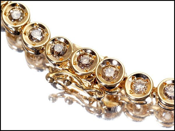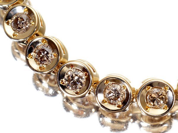 1円~【ジュエリー極】豪華な輝き!良質天然ブラウンダイヤモンド2.00ct 高級K18YGフルエタニティテニスブレスレット k802ikm【送料無料】