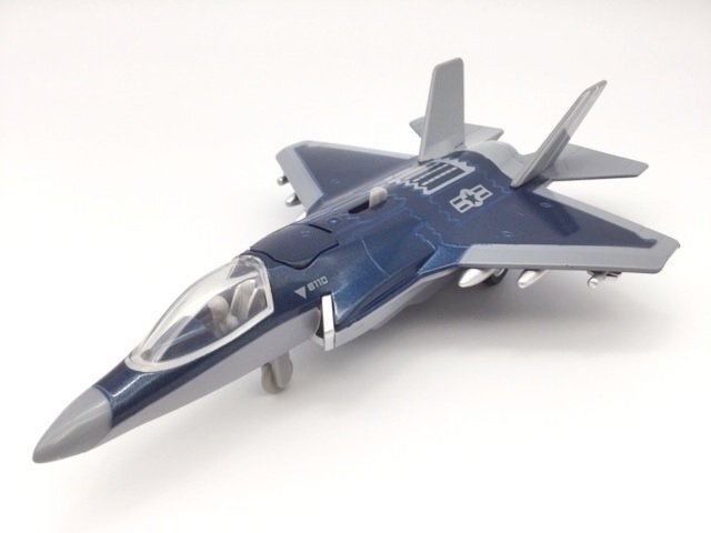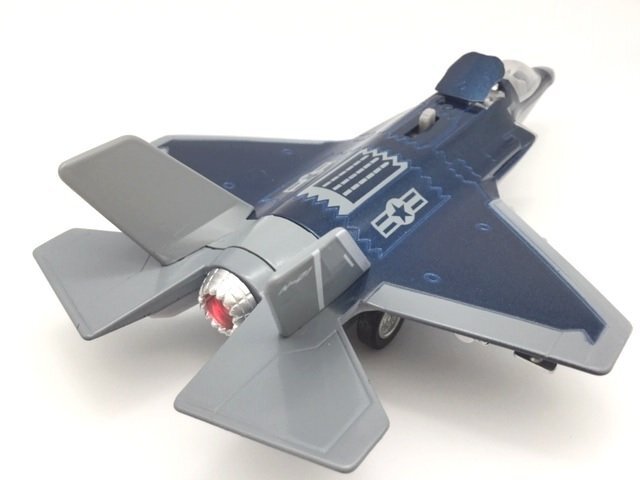ステルス戦闘機 F-35B ライトニング2 青 STOVL 排気ノズル点滅 エンジン音 機関銃音 トイプレーン アメリカ軍 自衛隊 航空自衛隊 ミニカー こちらの商品は箱入り商品ではございませんのでご注意くださいませ。 アメリカ軍で2000機以上が配備されているステルス戦闘機 F-35 ライトニング2。 アメリカ軍のみならず日本の航空自衛隊でも採用されています。 F-35の中でもB型は短距離離陸と垂直着陸ができるSTOVL仕様。 そんなスグレモノ戦闘機F-35Bをイメージしたトイプレーンです。 プルバック機能付きですので、チョロQみたいに走らせることができます。 機体上部のレバーを押すと機関銃音が鳴りエアーインテイク(吸気口)と排気ノズル(噴射口)が赤く点滅します。 機体上部のレバーを前方に動かすとコックピットの後ろにあるハッチが開き、リフトファンが出現! リフトファンはB型特有の装備で短距離離陸や垂直着陸の際に使用されます。 機体上部のレバーを前方に動かした際はエンジン音が鳴り、エアーインテイク、排気ノズル、リフトファンが赤く点滅します。 エンジン音や各部のライト点滅を止めたい場合は機体上部のレバーを後方に戻してください。レバーを後方に戻せばリフトファンのハッチも閉じます。 機体上部、垂直尾翼、水平尾翼は強固な金属製。 機体下部、ミサイル類、コックピットはプラ製。 内蔵のボタン電池(LR 44が2個)はプラスドライバー1本で容易に交換可能。 機体下部中央にある深穴のプラスネジを1本だけ外してください。それで電池交換ができます。 サイズ:長さ約20cm 幅約14cm 高さ約6cm ●神経質な方にはお勧めできません● 1台1台検品し丁寧に梱包させて頂きますが 入荷時からのかすかな傷や汚れ等があるかもしれません。 あらかじめ、ご了承下さいませ。 |