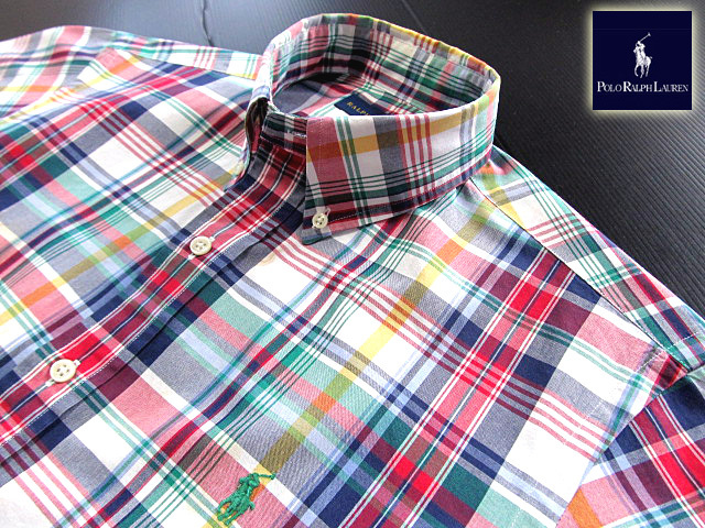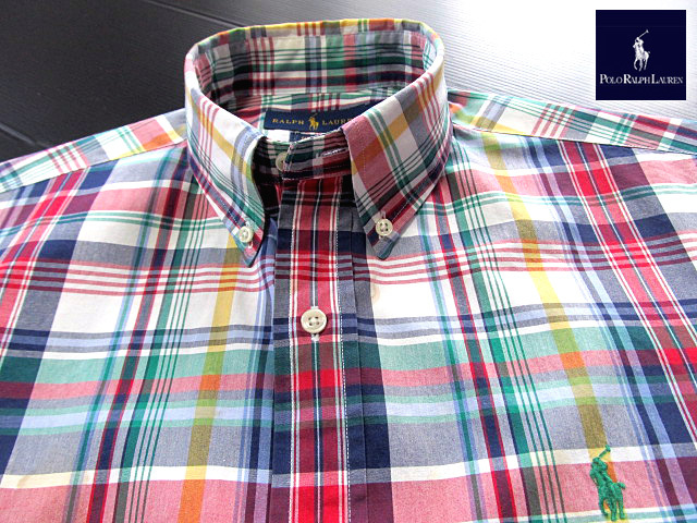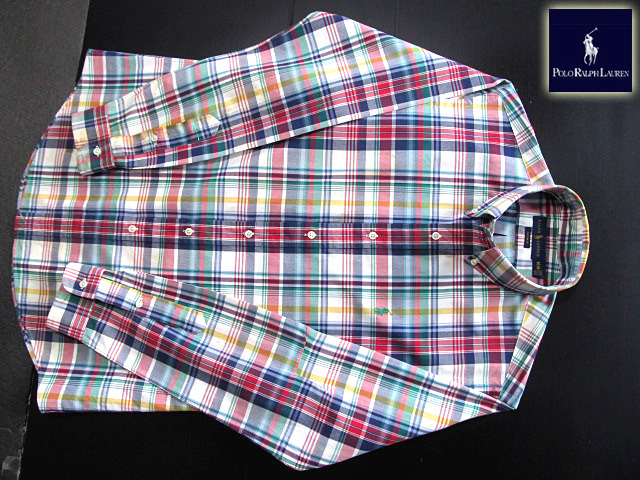 ★100円スタート!ラルフローレン RALPH LAUREN ボタンダウンシャツ 長袖 Mサイズ 希少品 ハンサムチェック ブルー×グリーン×レッド