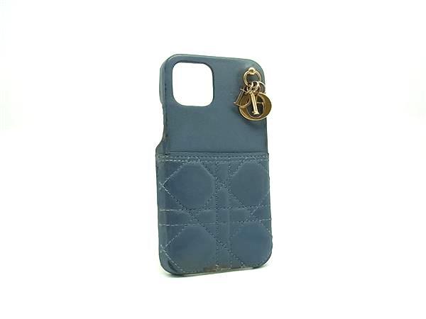 ChristianDior ディオール レディディオール カナージュ レザー iPhone15 対応 アイフォンケース スマホケース ブルー系 DI7965