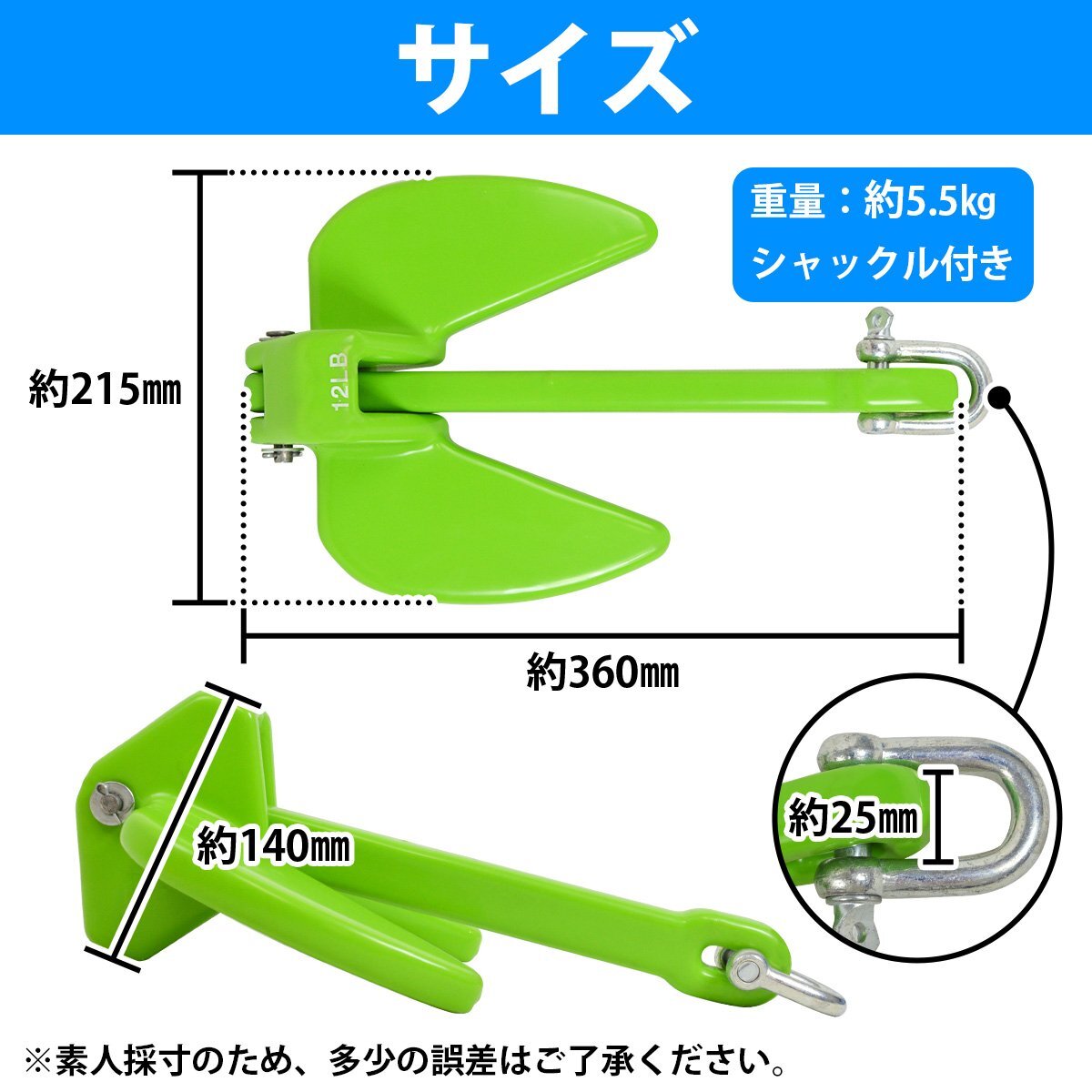 【送料無料】12LB 5.5kg 5.5キロ アンカー 錆に強い PVCコート ジェットスキー ゴムボート 船 緑 グリーン アンカー 錘 碇 爪型