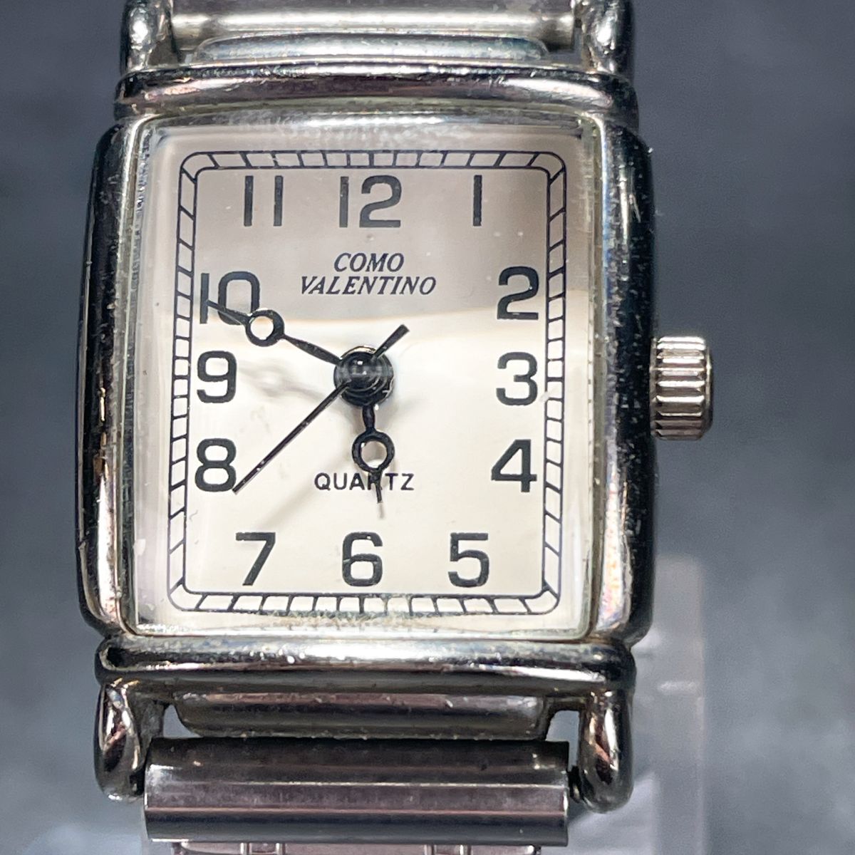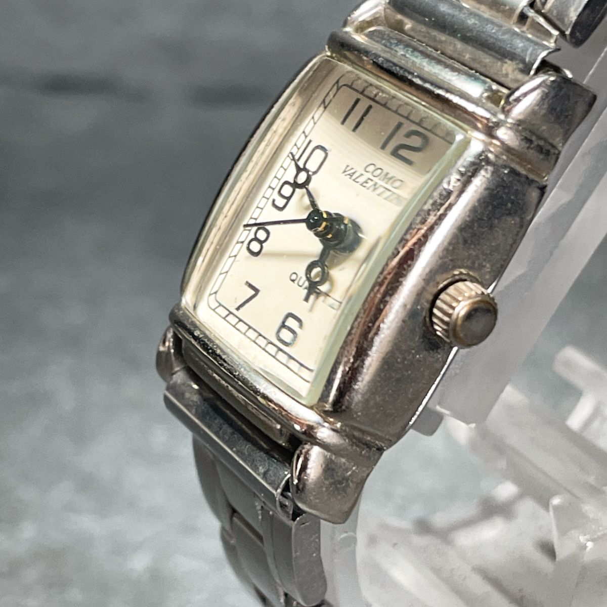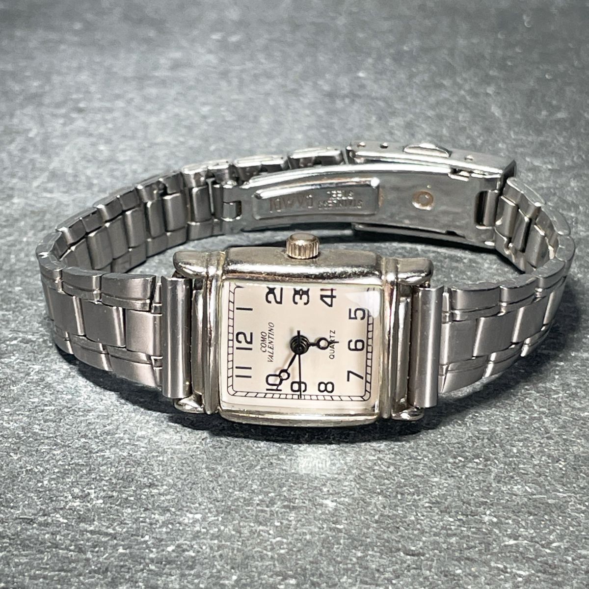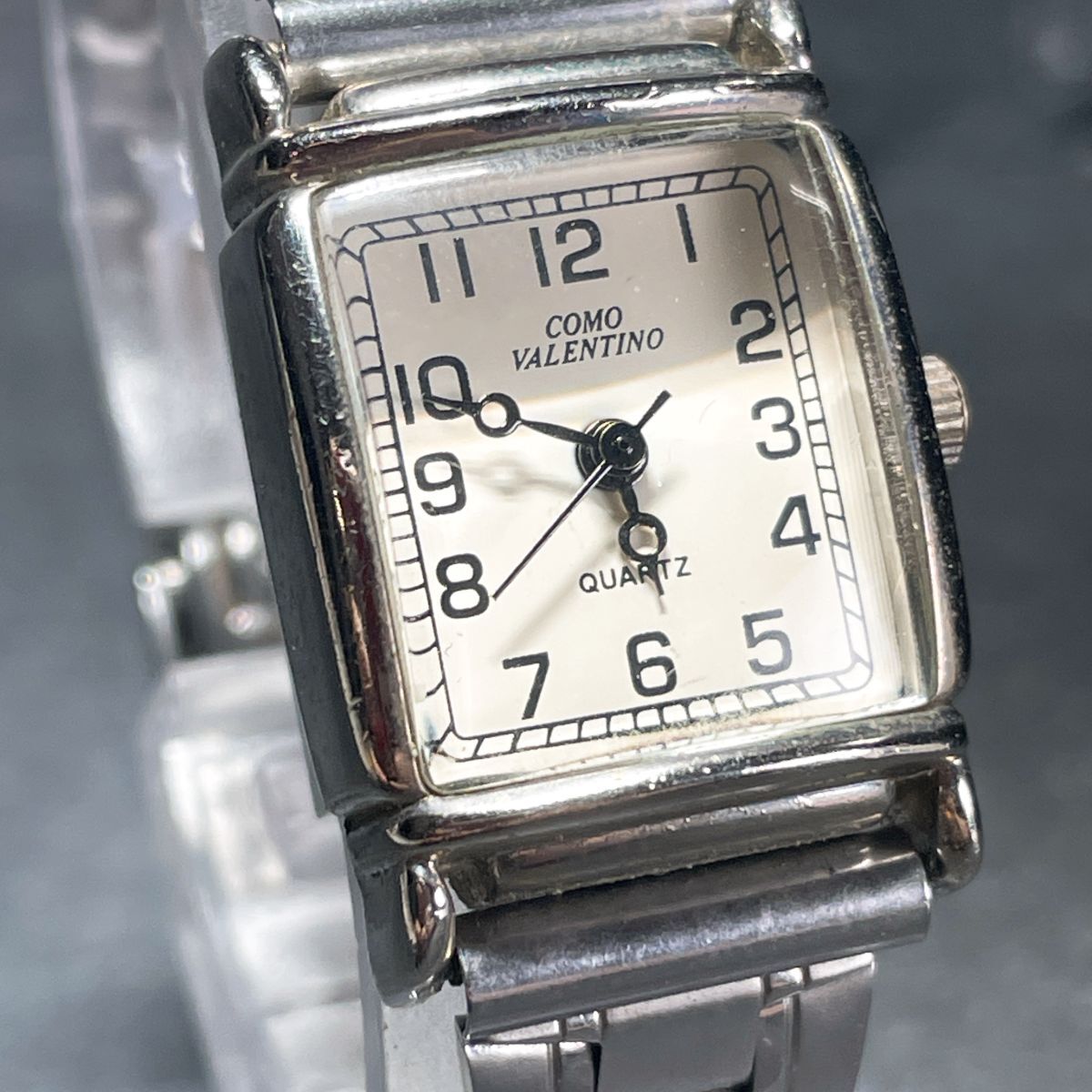 美品 COMO VALENTINO コモバレンチノ CV-2090L 腕時計 アナログ クオーツ 3針 ホワイト文字盤 スクエア 新品電池交換済み 動作確認済み
