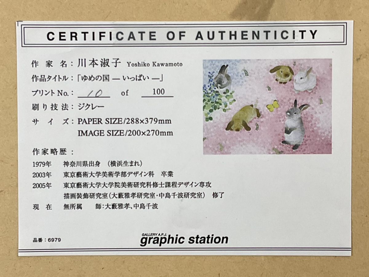真作■ジクレー■ 川本淑子 ■『ゆめの国-いっぱいー』■師・中島千波 可愛すぎる最高傑作 ■動物を愛する画家■11d の出品となります。