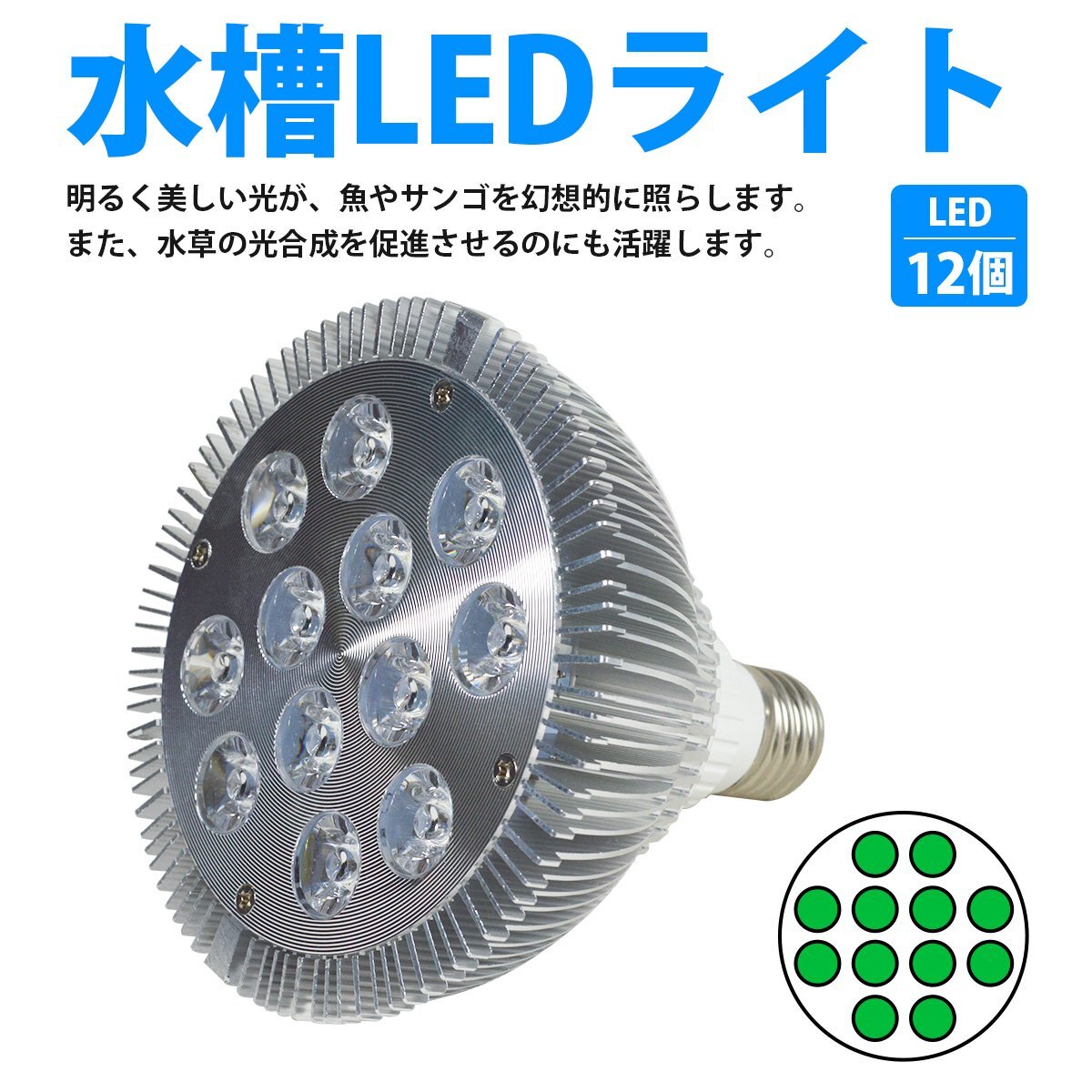 [緑12LED] 24W(2W×12) 電球 E26 口金 水槽 用 照明 植物育成 スポット ライト 12LED アクアリウム 電球 水草 サンゴ 熱帯魚