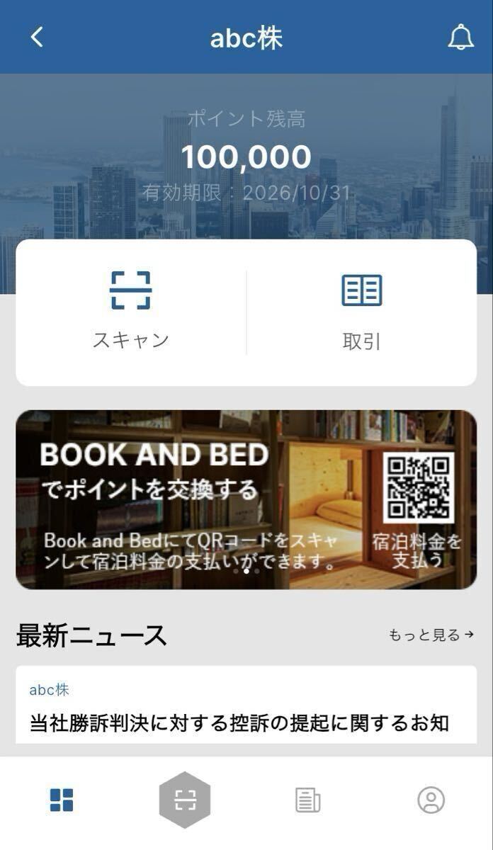 abc株式会社の株主優待ポイント 100,000P