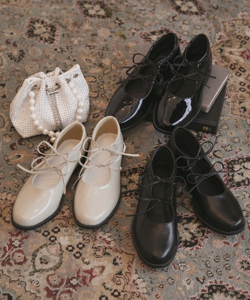 参考商品名:【BONLECILL noir】ダブルリボンストラップバレエシューズ/ギリーシューズ