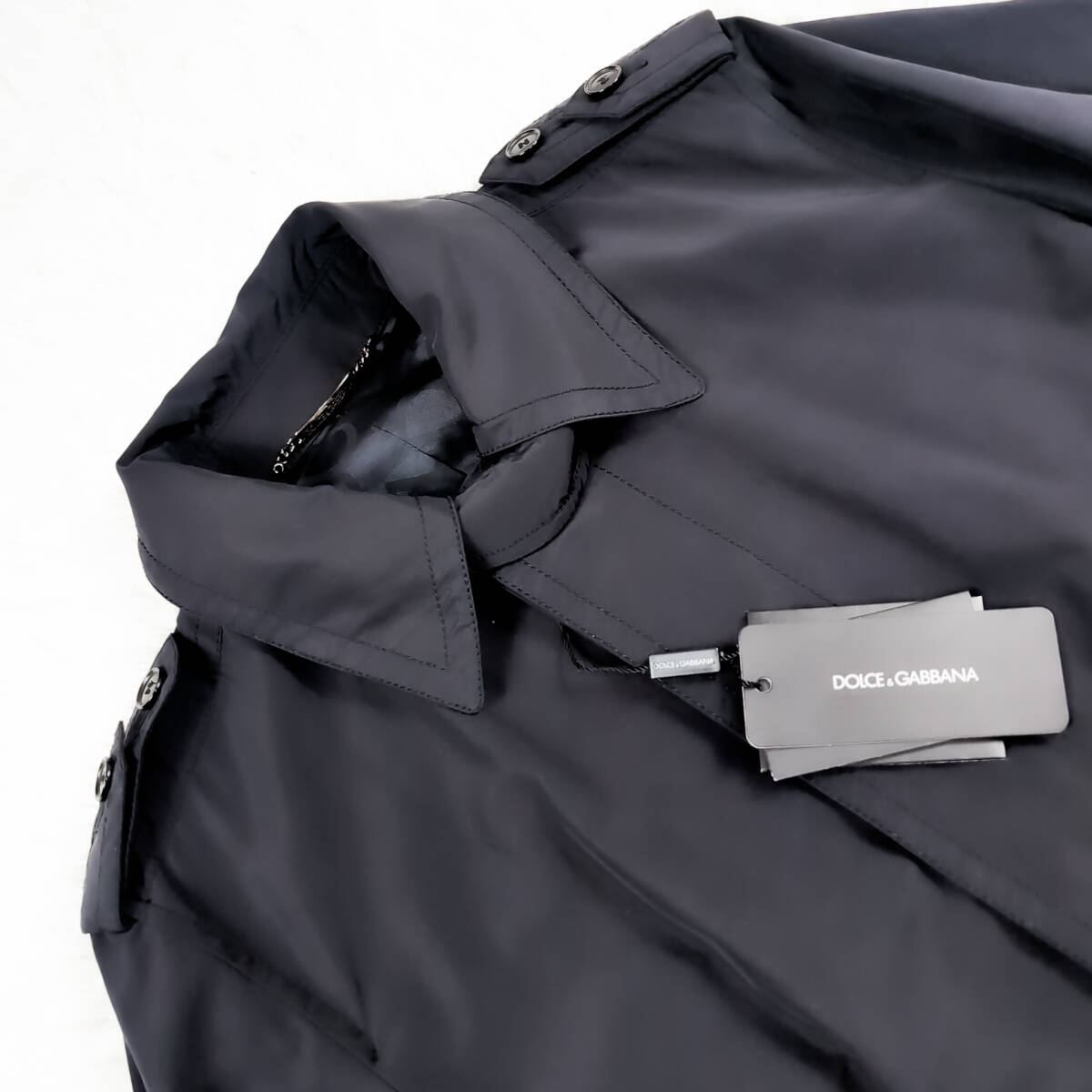 定価70万!未使用級DOLCE&GABBANA最高級ペルシャラムレザー ナポレオンコートDGロゴ柄L~Mトレンチ黒ブラック46ドルガバドルチェ&ガッバーナ