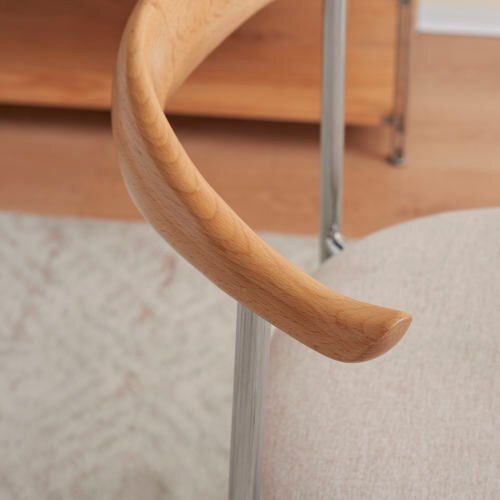 「安定感あるスチール脚」椅子の脚もスチール製で安定感あり、コンパクトで使わない時にはダイニングテーブル下にも収めやすく、日々の使い勝手を快適にサポートします。立ち上がりやすく、移動もさせやすいのも魅力です読書などの時も姿勢が安定し、立ち座りもスムーズです!