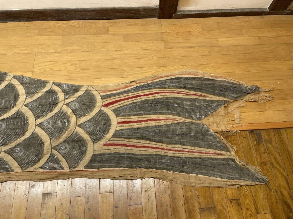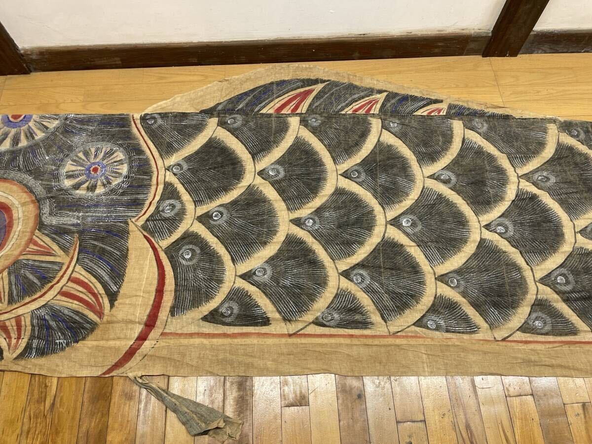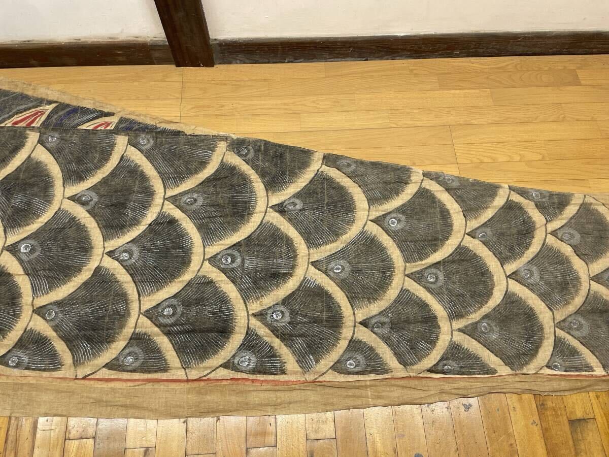 古い鯉のぼり① 真鯉(全長520cm) 黒 手描き 鯉幡 木綿 古布 染め物 リメイク素材
