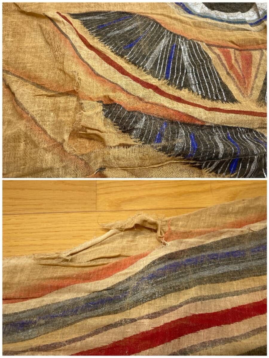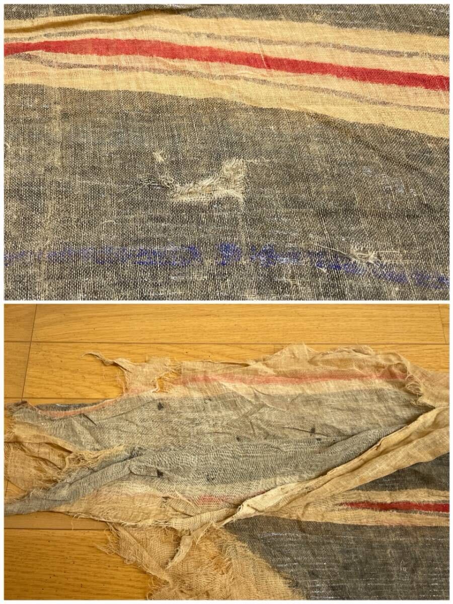 時代による汚れ・染み・色褪せ・シワ・擦れ・ほつれ・破れなどがあります。