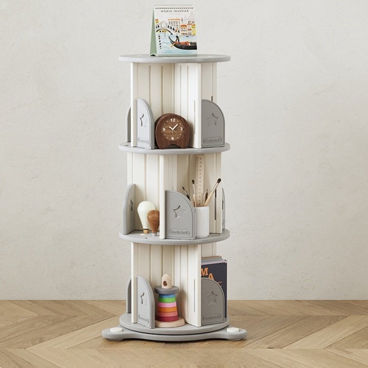 新品★【3段】回転式本棚 飾り棚 絵本棚 360°回転本棚 コミック収納棚 本棚 HDPE製 大容量 回転ラック 組立簡単 子ども部屋収納