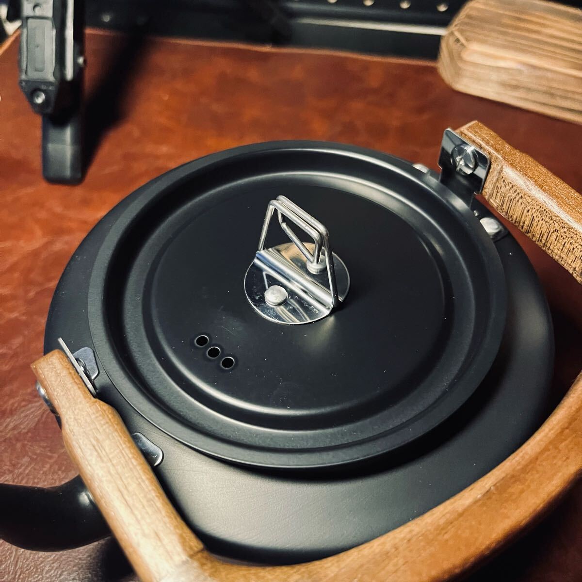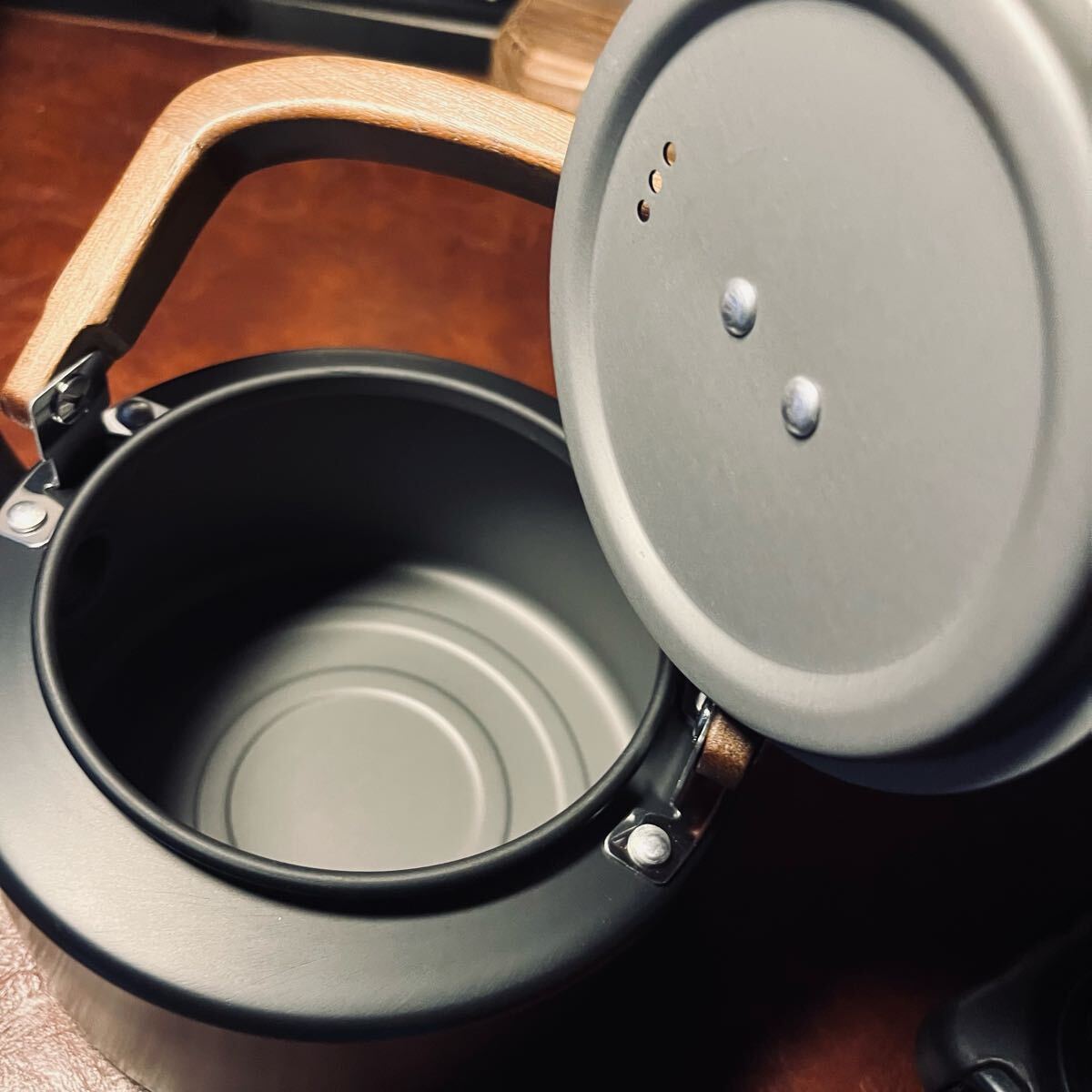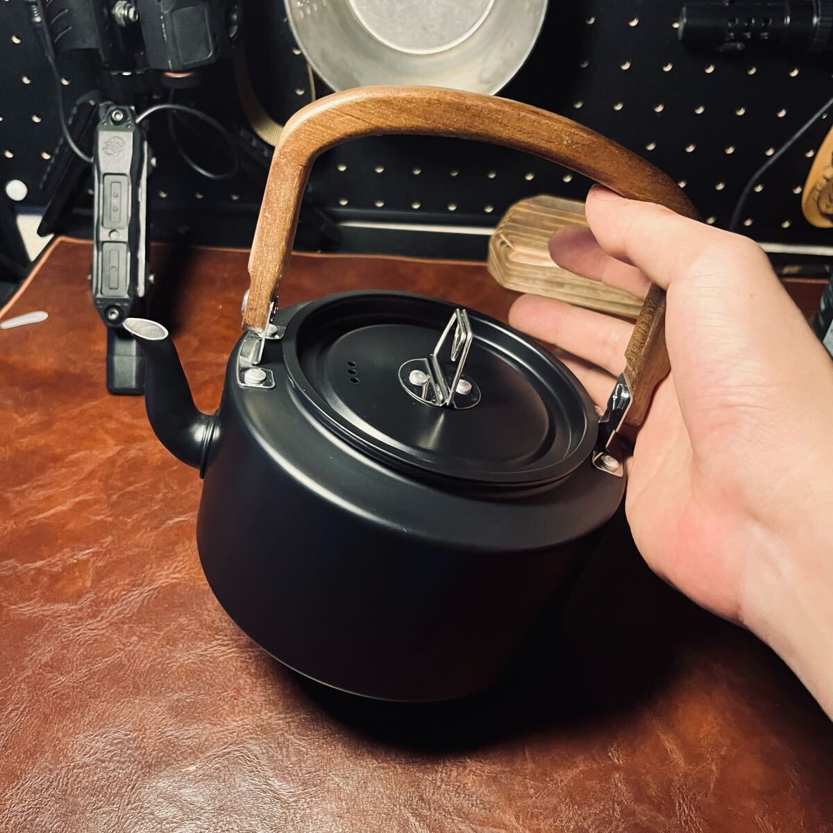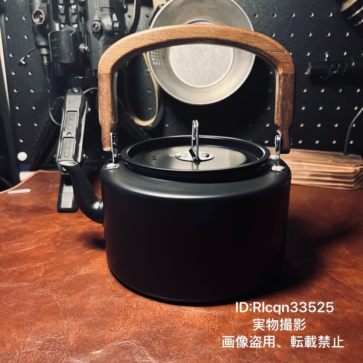 アルミ製 ブラックヤカン ティーケトル カップ コーヒーティーポット 屋外キャンプ ハイキング アウトドア 1.2L 14×18.5cm