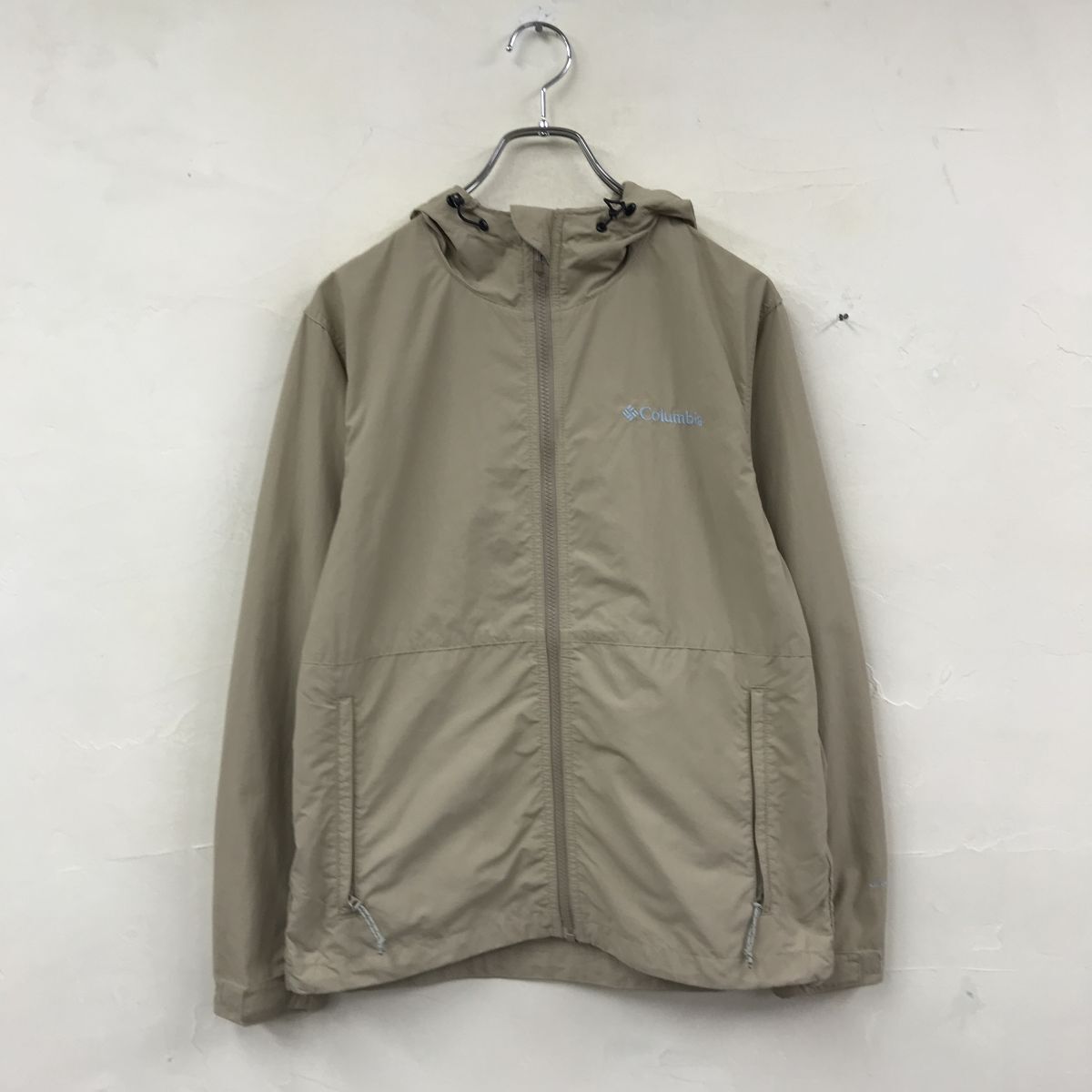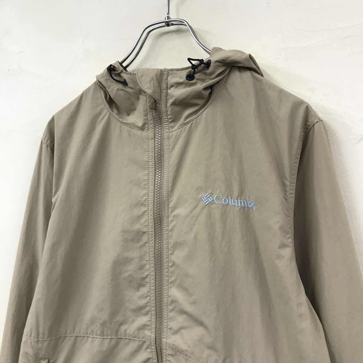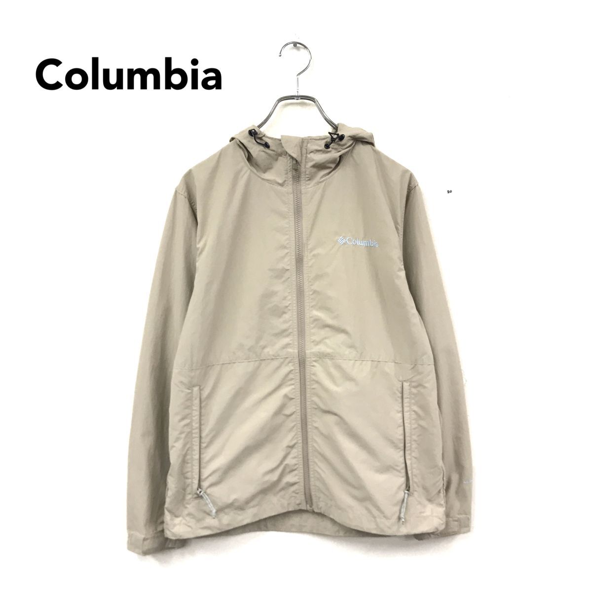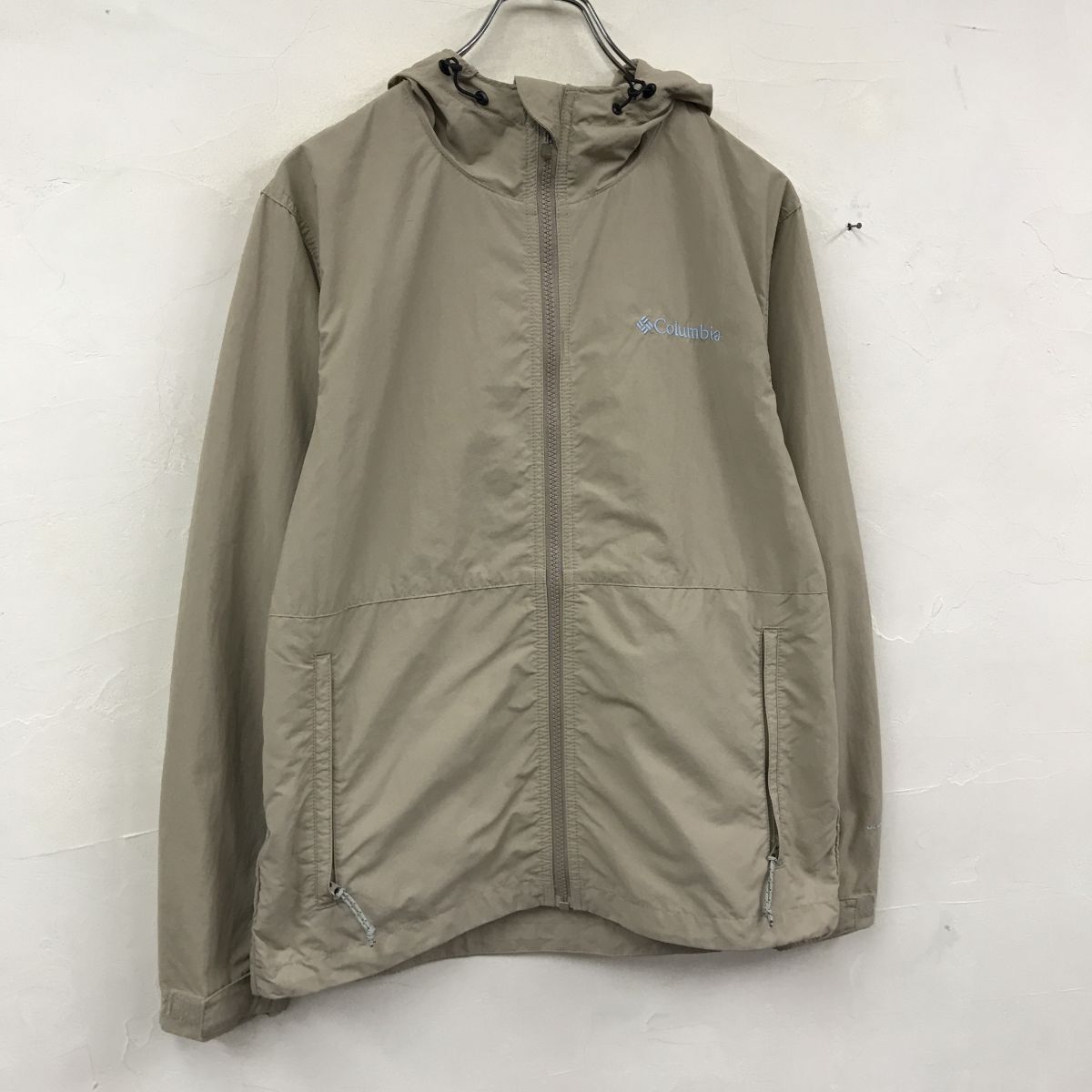 2N2213-T◆Columbia コロンビア ナイロンジャケット ジップパーカー 刺繍ロゴ◆sizeM ベージュ メンズ トップス ナイロン100