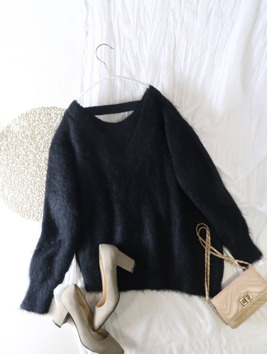 新品☆ガリャルダガランテ取扱/オーフリー Awfully☆モヘヤ混 バックVネック モヘヤニット Fサイズ☆M-B 6523