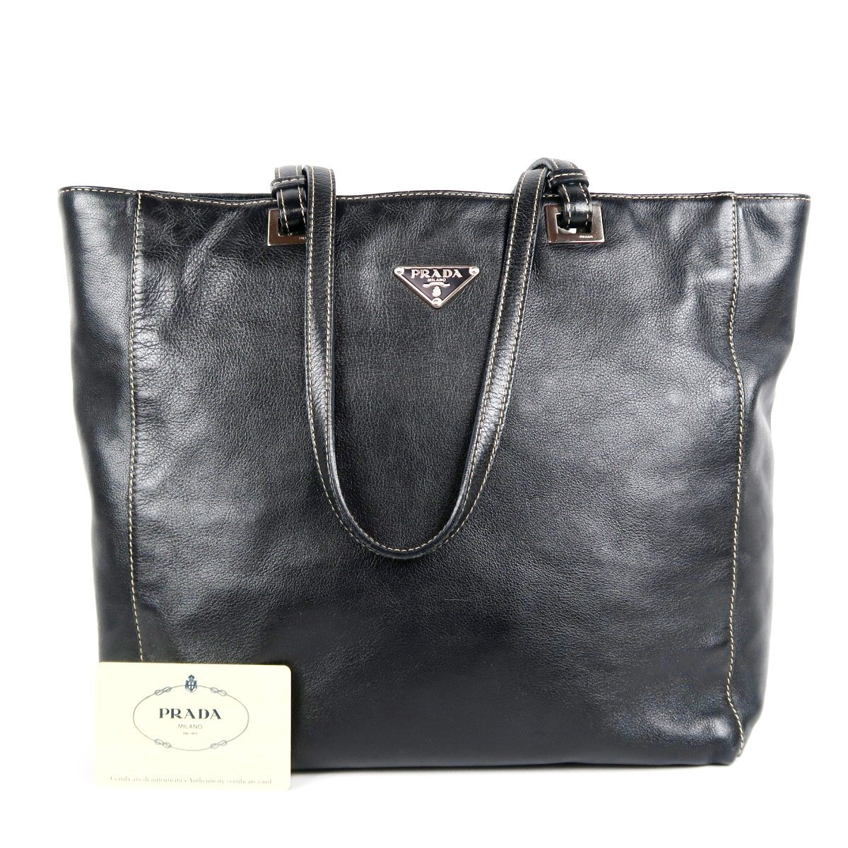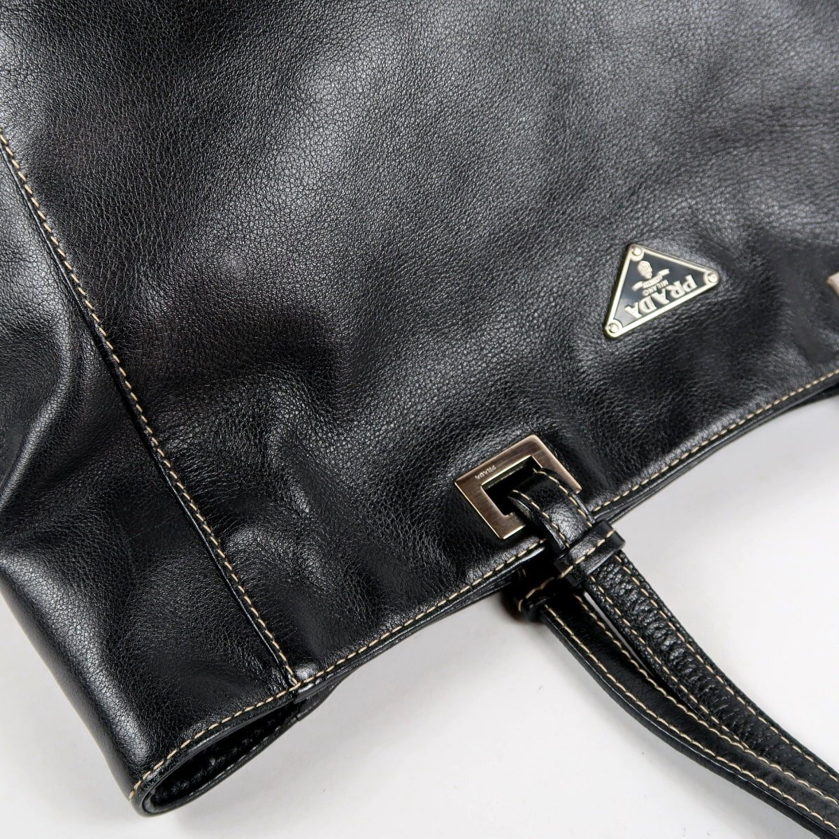 | 【美品】PRADA プラダ レザー ハンド トートバッグ ブラック系 ブランド鞄【TP91】 |