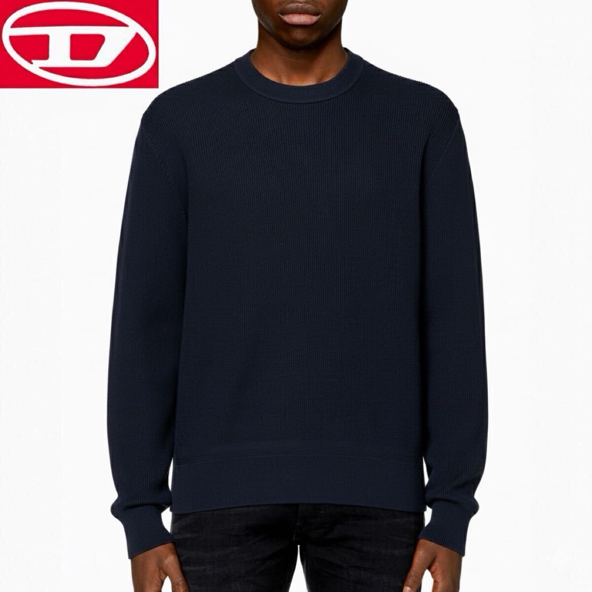 ミニマルなデザインが魅力のDIESELプルオーバーニット。上質なコットンミックス素材で着心地がよく、どんなコーデにも合わせやすい万能アイテムです。胸元のワンポイントロゴがさりげないアクセント。1枚でもインナーとしても活躍してくれます。
