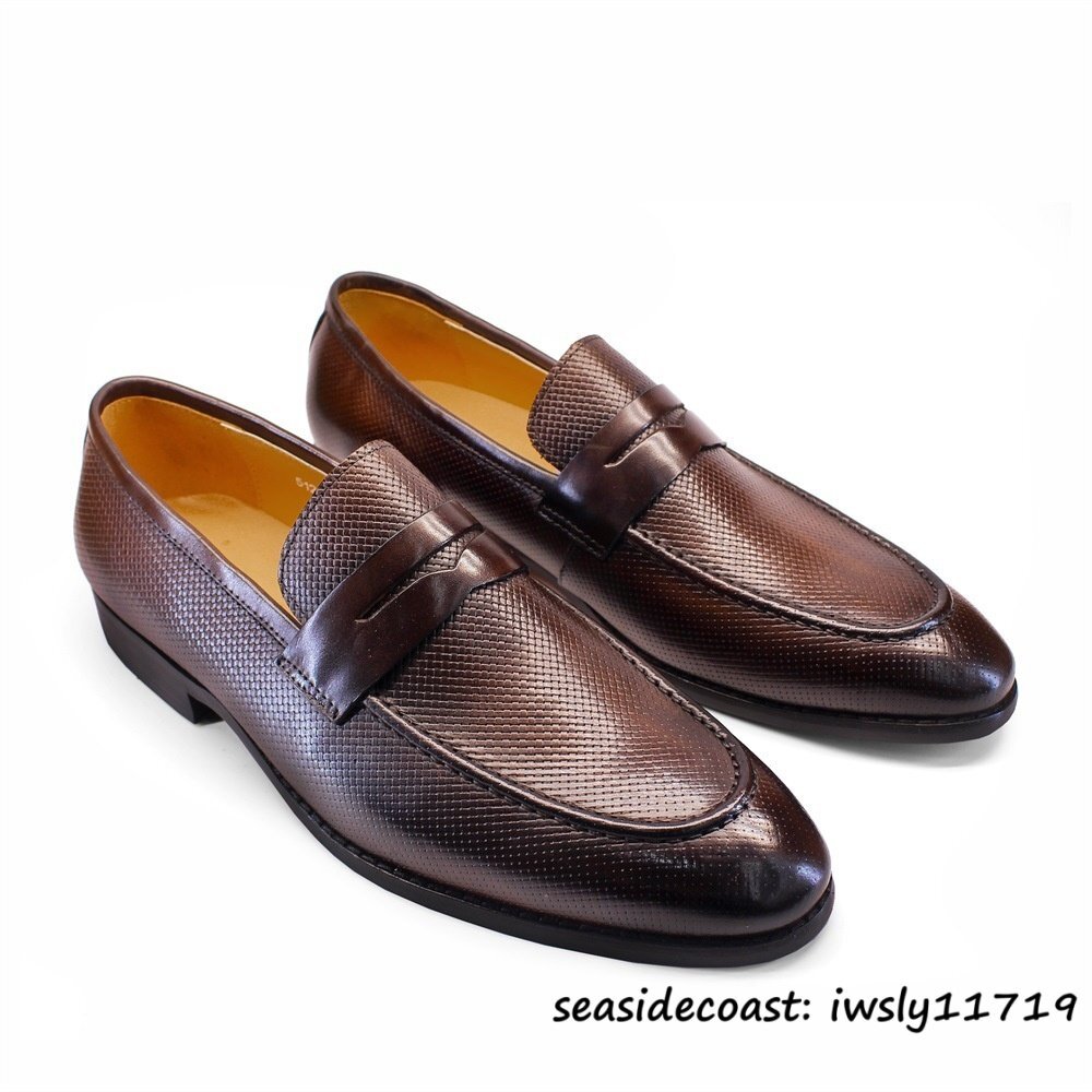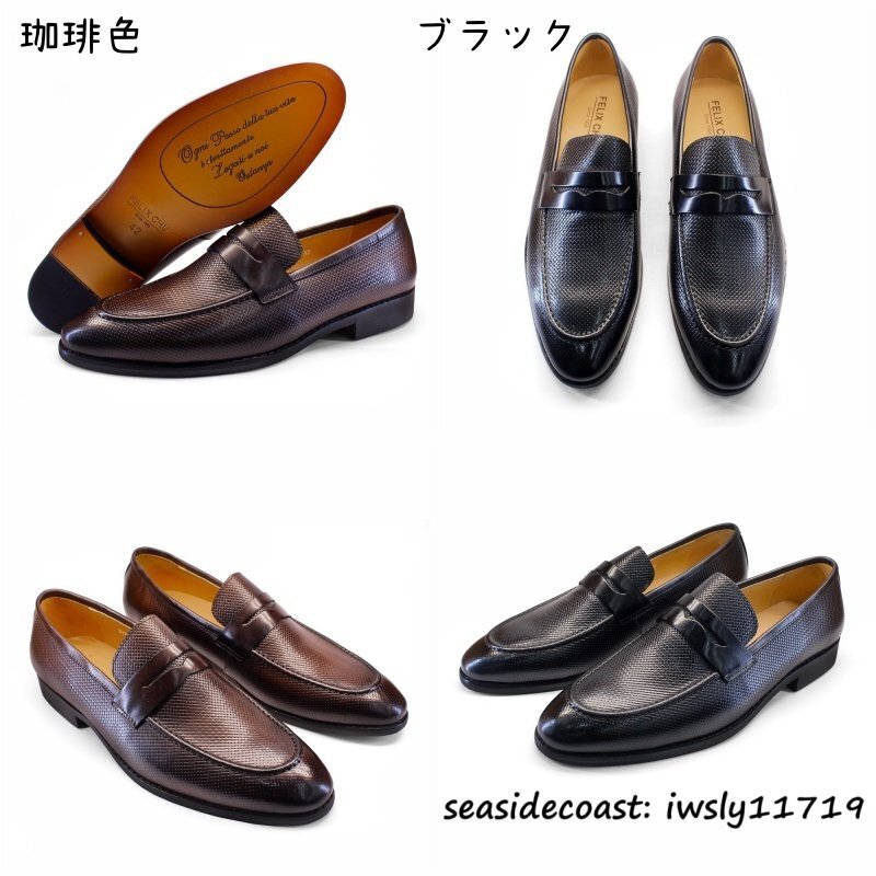 最高級■定価10万 ビジネスシューズ メンズ 透かし彫り 本革 レザーシューズ ローファー スリッポン 上質牛革 職人手作り 珈琲色 27.5cm
