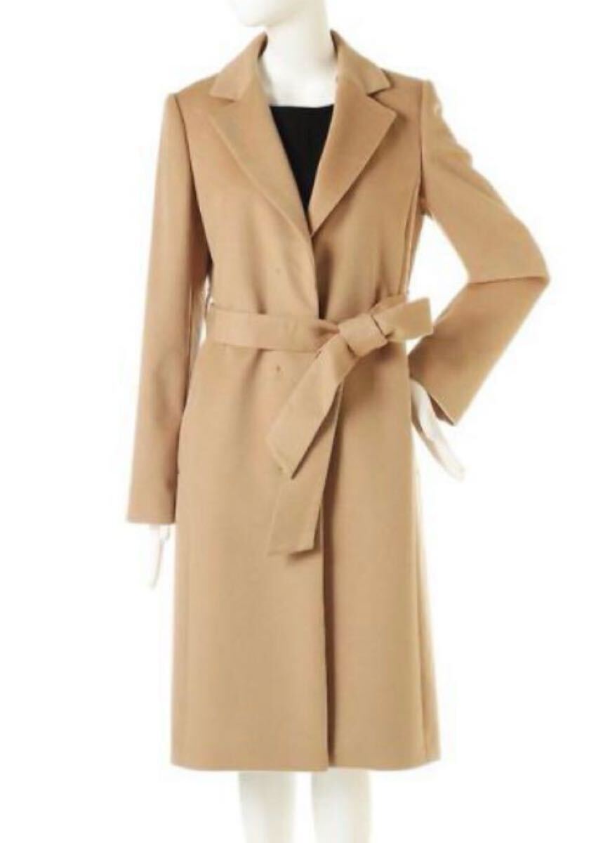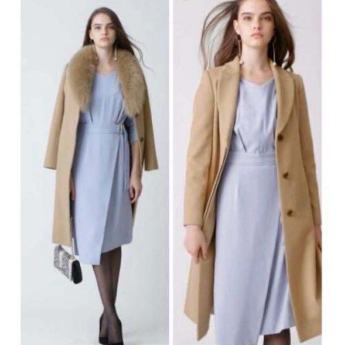 着脱可能なフォックスファーの衿とワンポイントのベルトデザインがディティールで大人の女性らしいクールさも引き立つ1着です。