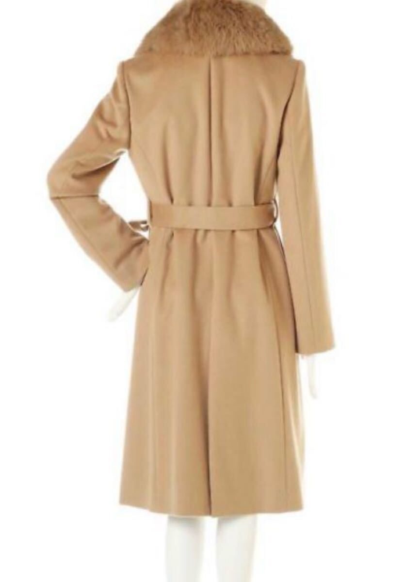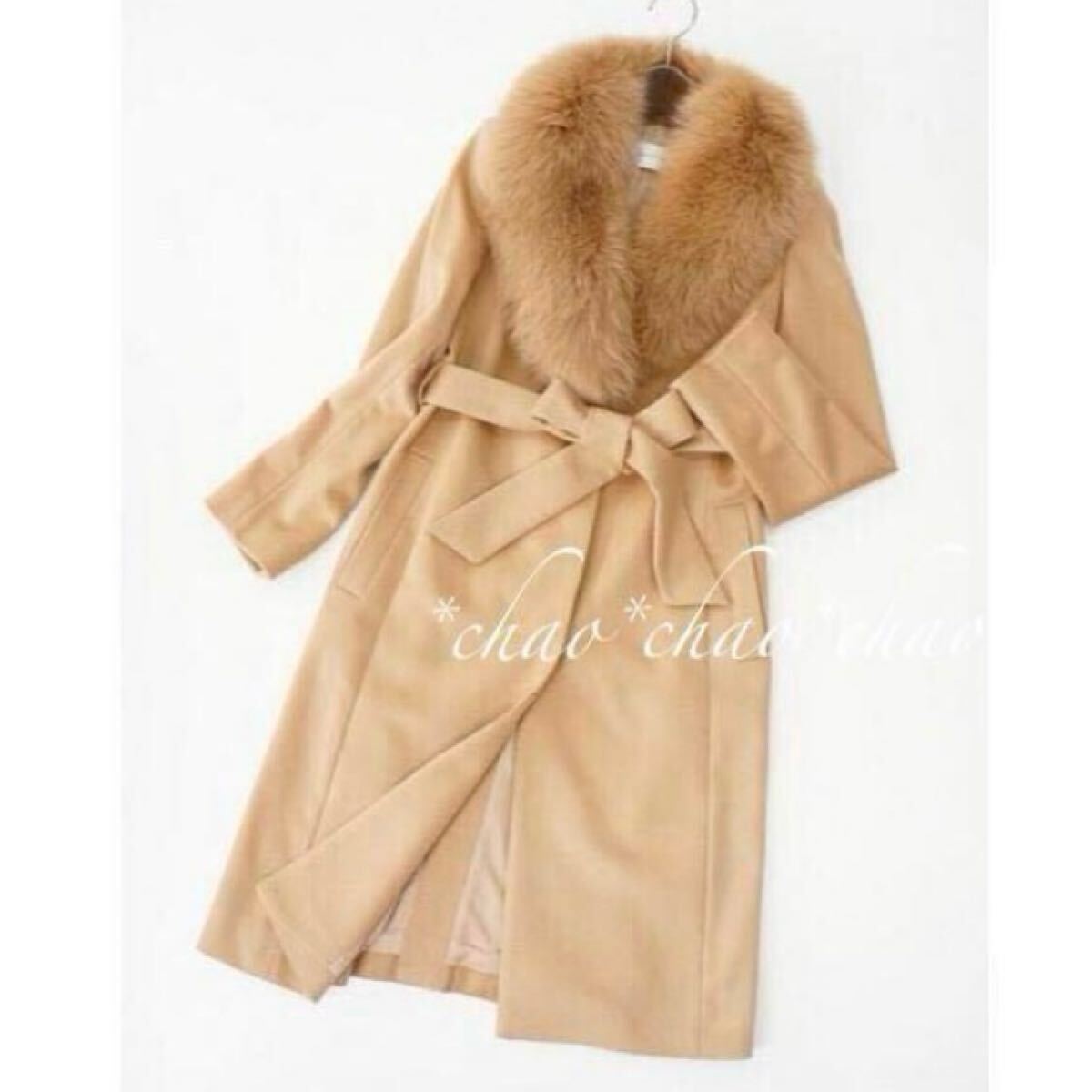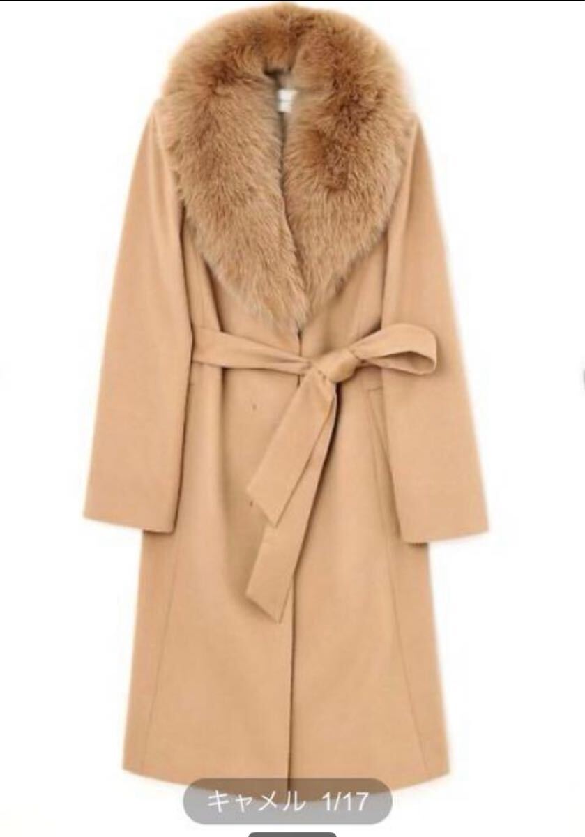 カシミヤ混FOXファー付きリボンベルトコートになります。