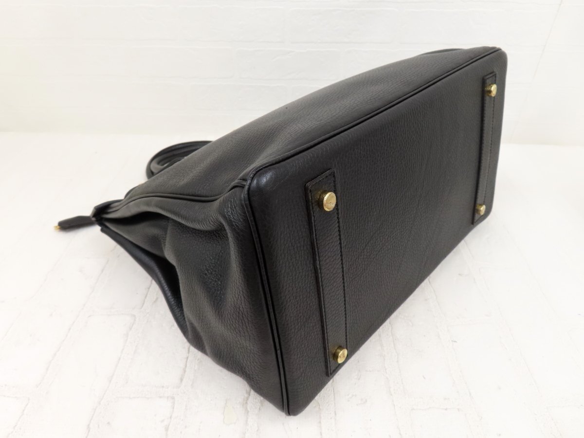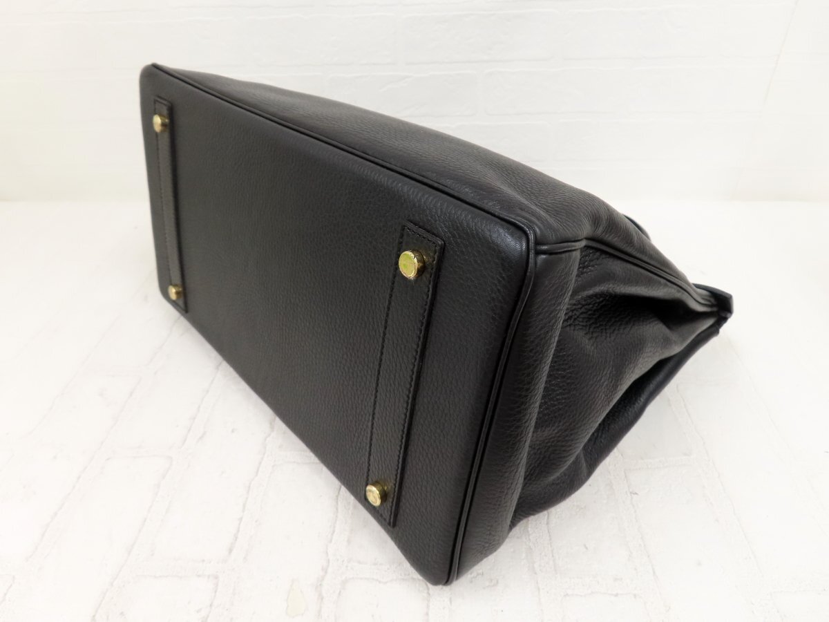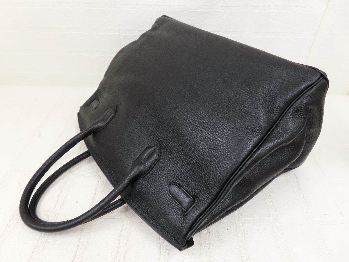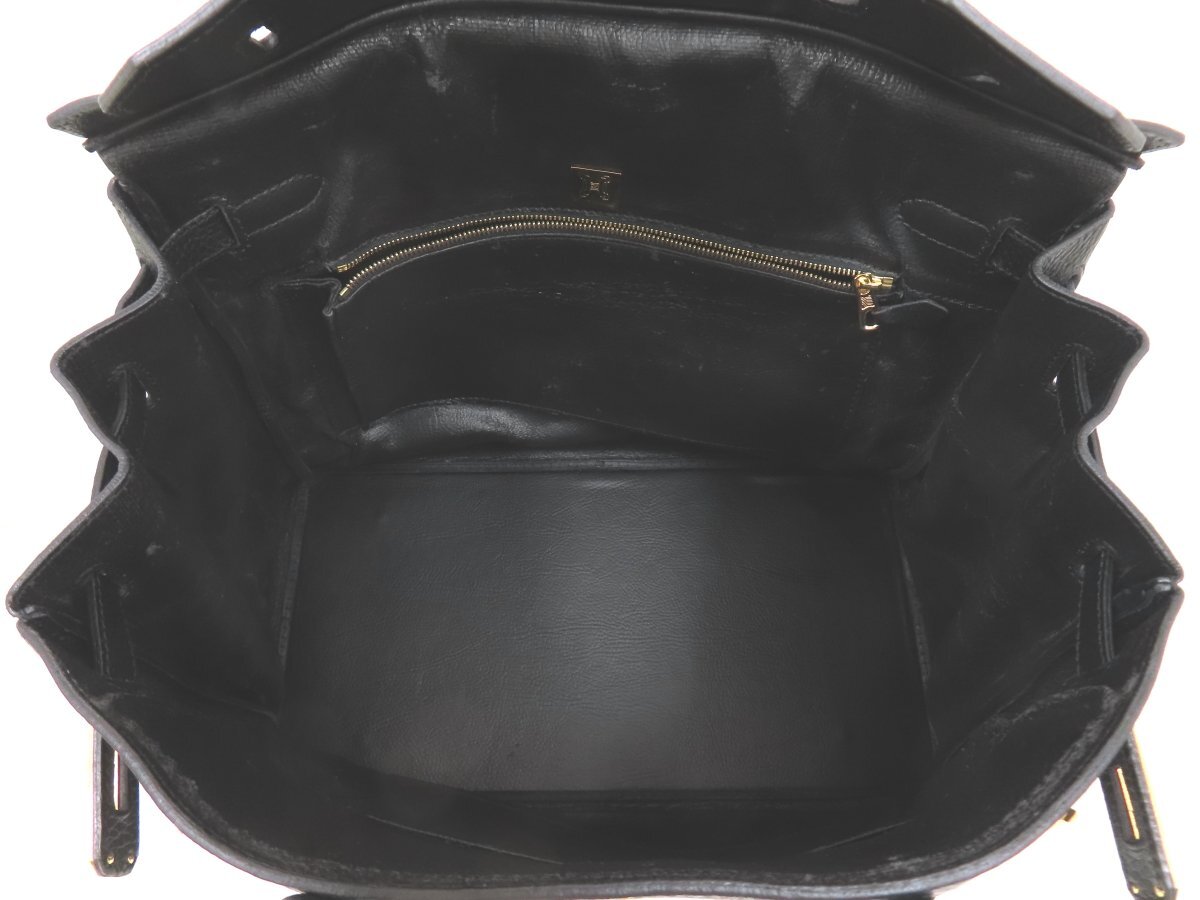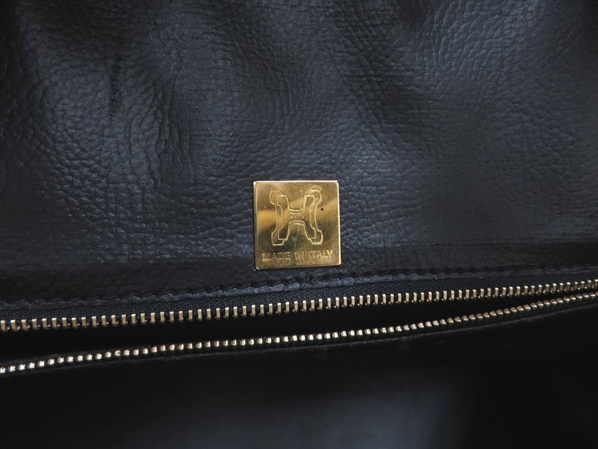 ◆超美品◆GENUINE◆カーフ レザー 本革◆ハンド バッグ◆ブラック ゴールド金具◆腕掛け◆イタリア製◆A4サイズ収納◆フラップ◆N10508