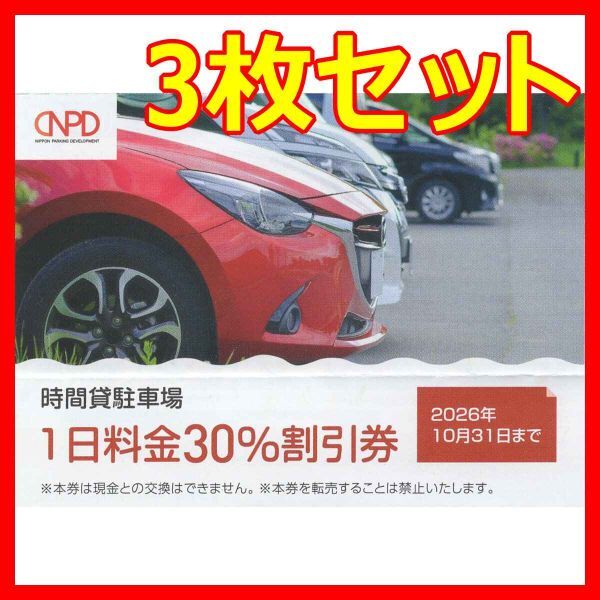 日本駐車場開発 時間貸駐車場1日料金割引券 3枚です。