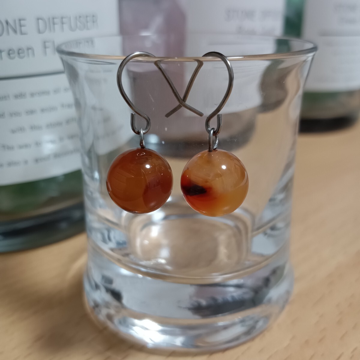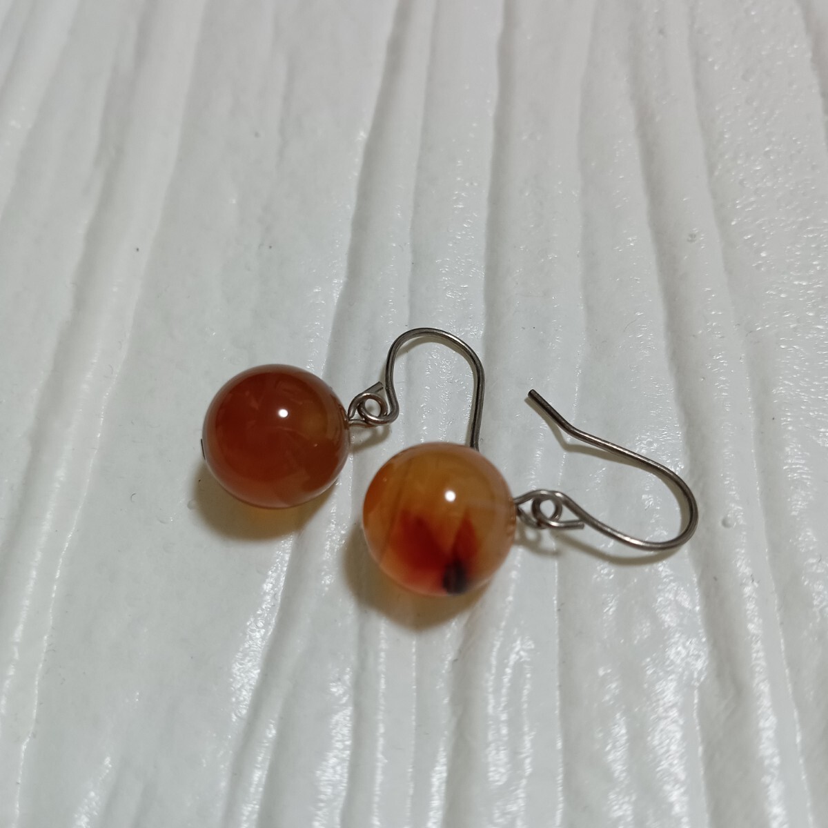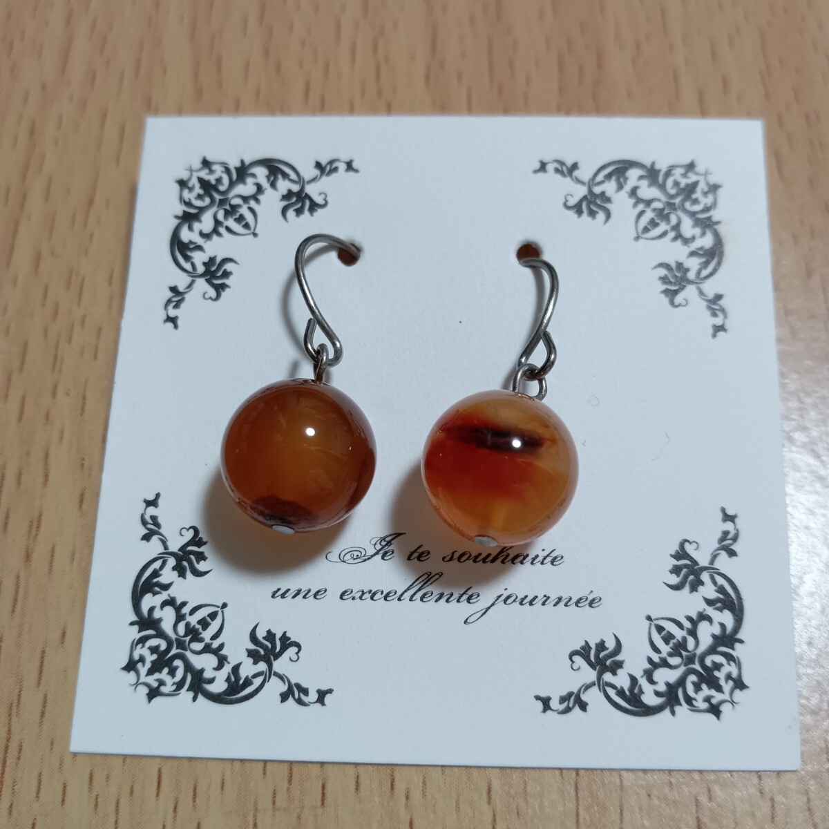 『メノウ』天然石 アレルギーが出にくいチタンフックピアス使用 ハンドメイド シンプル ゆらゆら揺れる 瑪瑙   113