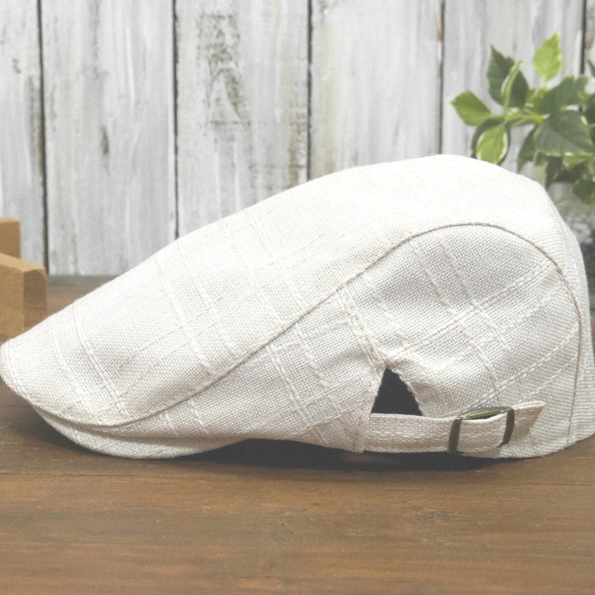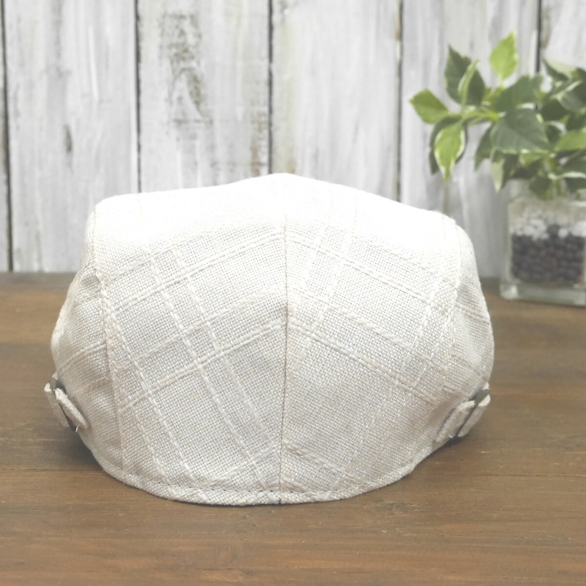 全国一律送料450円 ステッチチェック リネン風 麻 ハンチング ホワイト シンプル サイズ調整可 オールシーズンOK 男女兼用