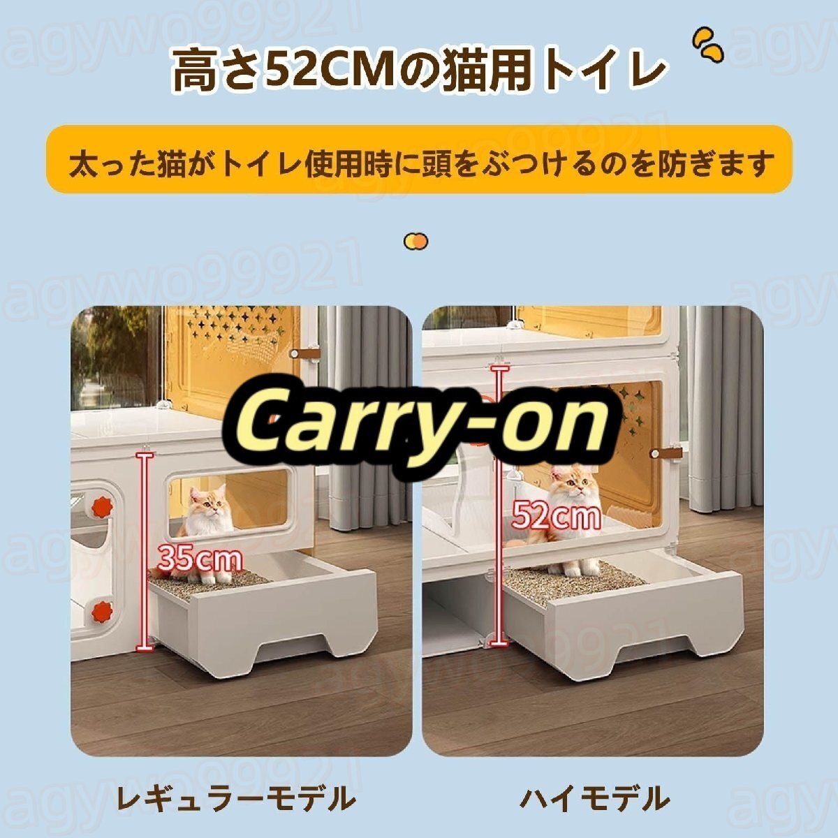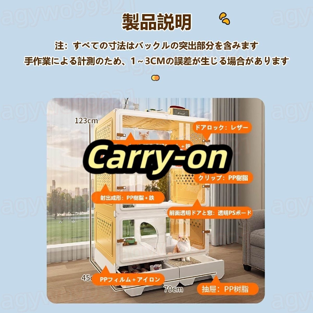 広々とした室内:猫は広々とした環境を好み、十分な高さの休憩スペースがあるため、特に体重の重い猫でも快適にリラックスできます。高さがあると猫は安心感を得ることができるので、高い休憩場所を追加で作る必要があります。 移動が簡単:この猫用ケージは屋内用トイレ付き