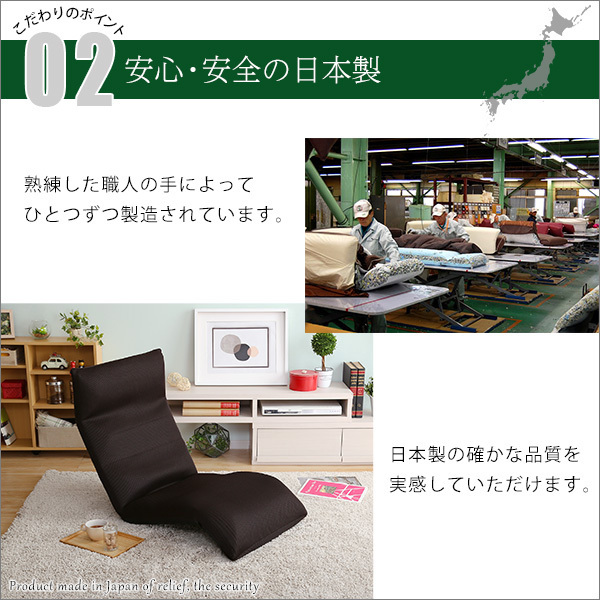 【ポイント】 14段階のギアチェンジで絶妙な角度に調整ができるダウンスタイル! しっかりと体を支え、疲れにくい形状になっています。 コンパクトに折り畳むことができるので収納するのにも便利です。 生地はふわふわの起毛タイプとサラッとした通気性のあるメッシュタイプがございます。 |