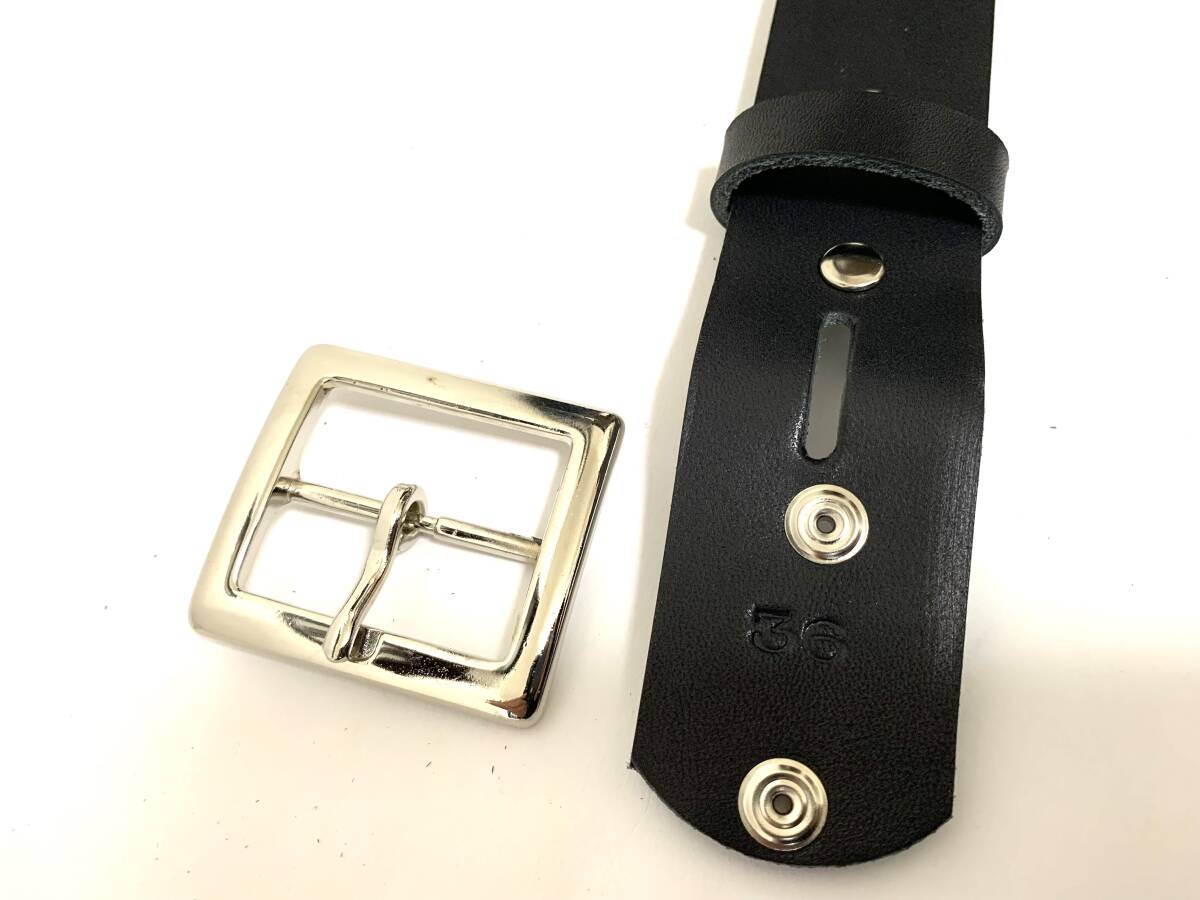 ベルトの幅は40mm、革の厚みは 4mm(多少の誤差はあります。)色は黒色です。