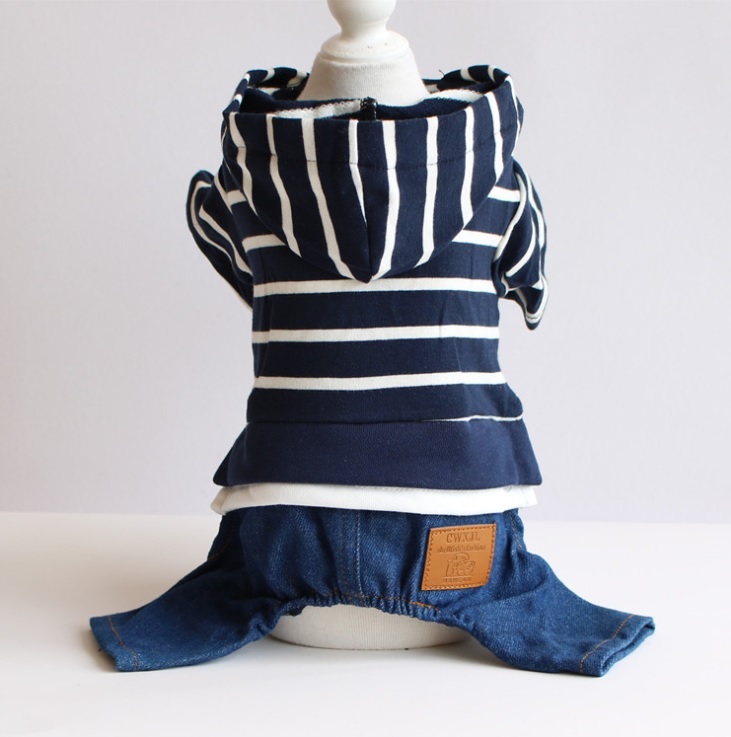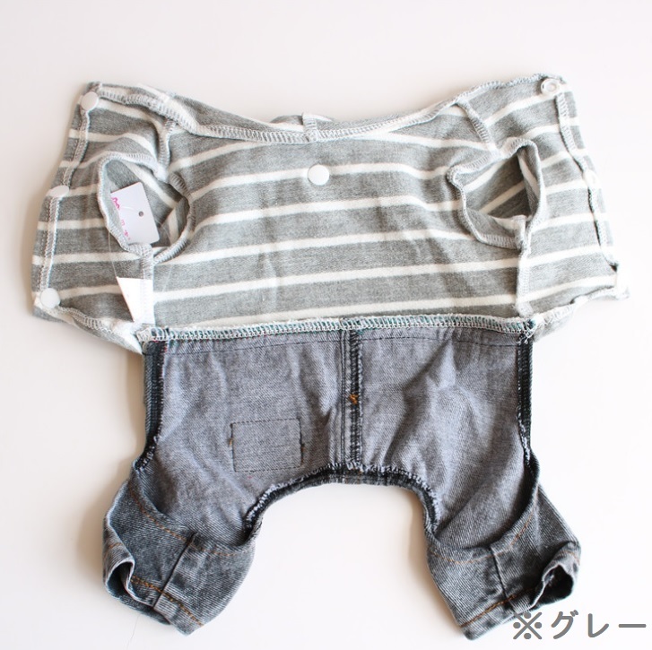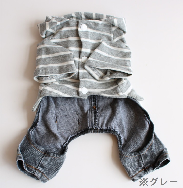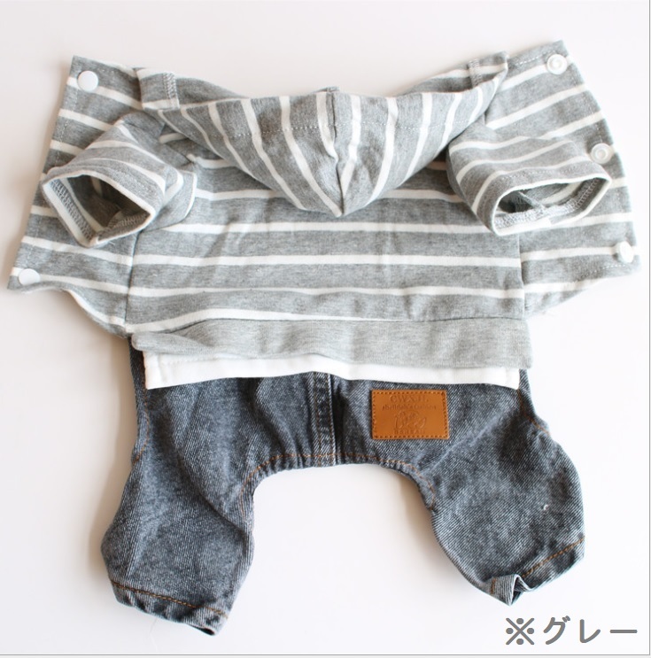 Sサイズ ネイビー ロンパース ボーダー パーカー ジーンズ しましま ドッグウェア 犬服 カバーオール つなぎ チワワ トイプードル 小型犬