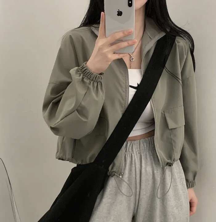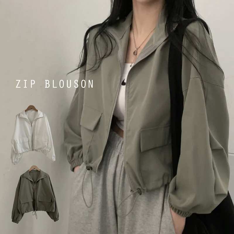 ・脚長+細見えしてくれるクロップド丈ブルゾン。薄手で軽い着心地で気軽にさっと羽織れます。