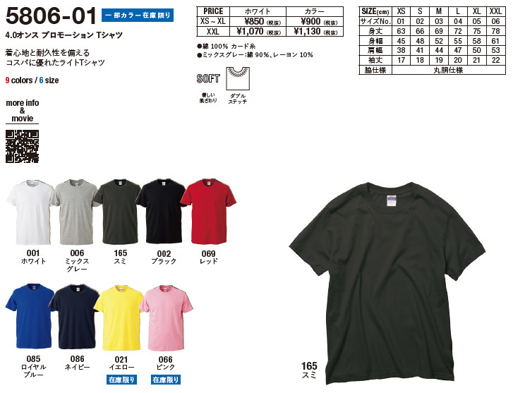 4.0ozの薄手生地となりますので、1枚で着ても良し、インナーにしても良しの万能Tシャツとなります。