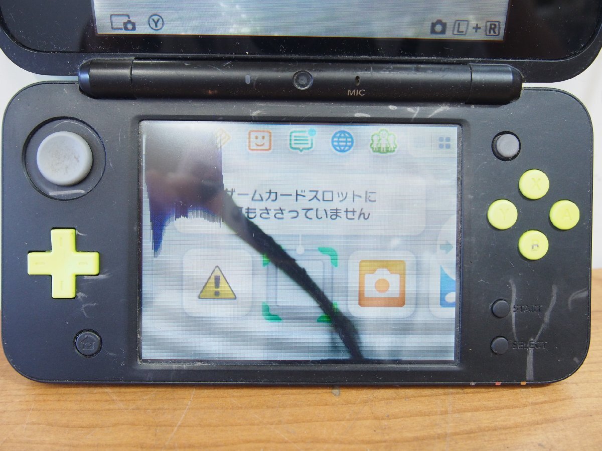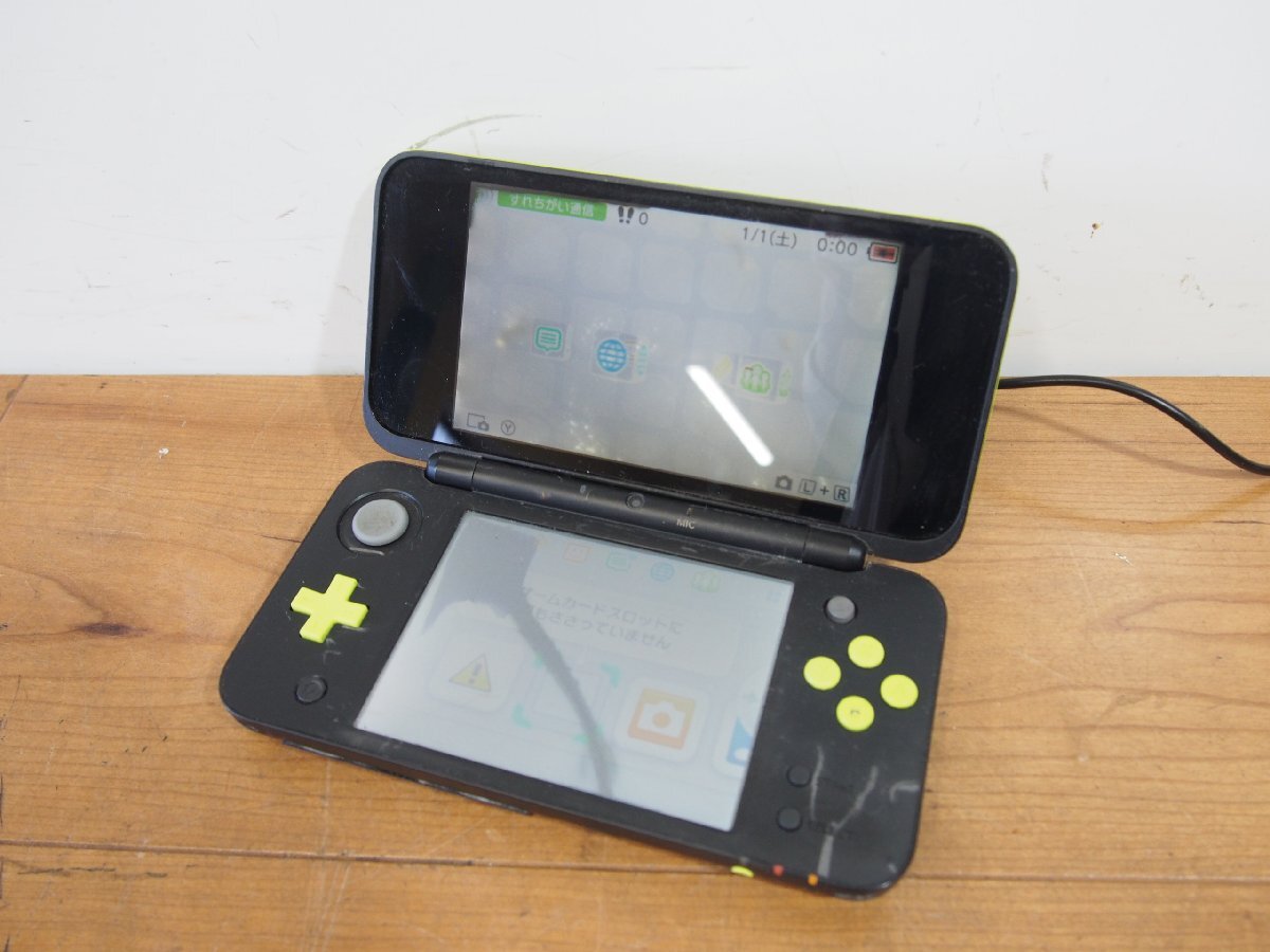 | ☆【2T1029-21】 Nintendo ニンテンドー 任天堂 new 2DSLL JAN-001 ブラックライム 本体のみ タッチペン付き 通電OK ゲーム機 ジャンク