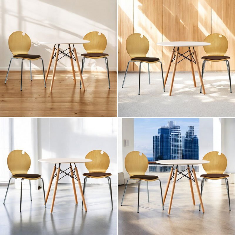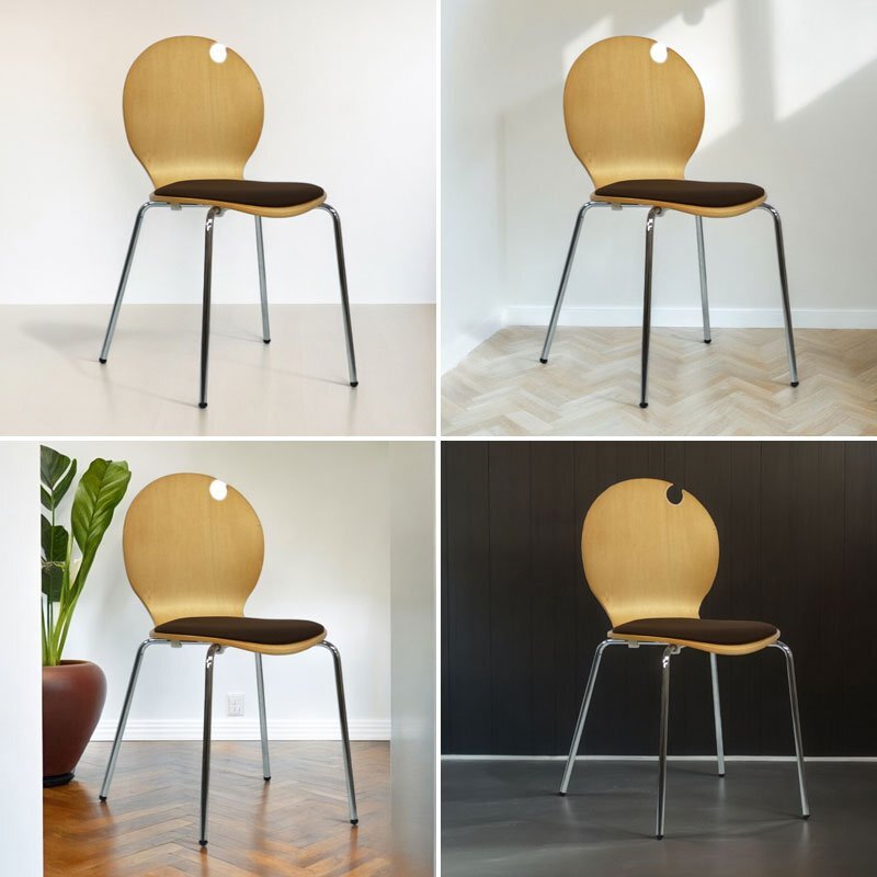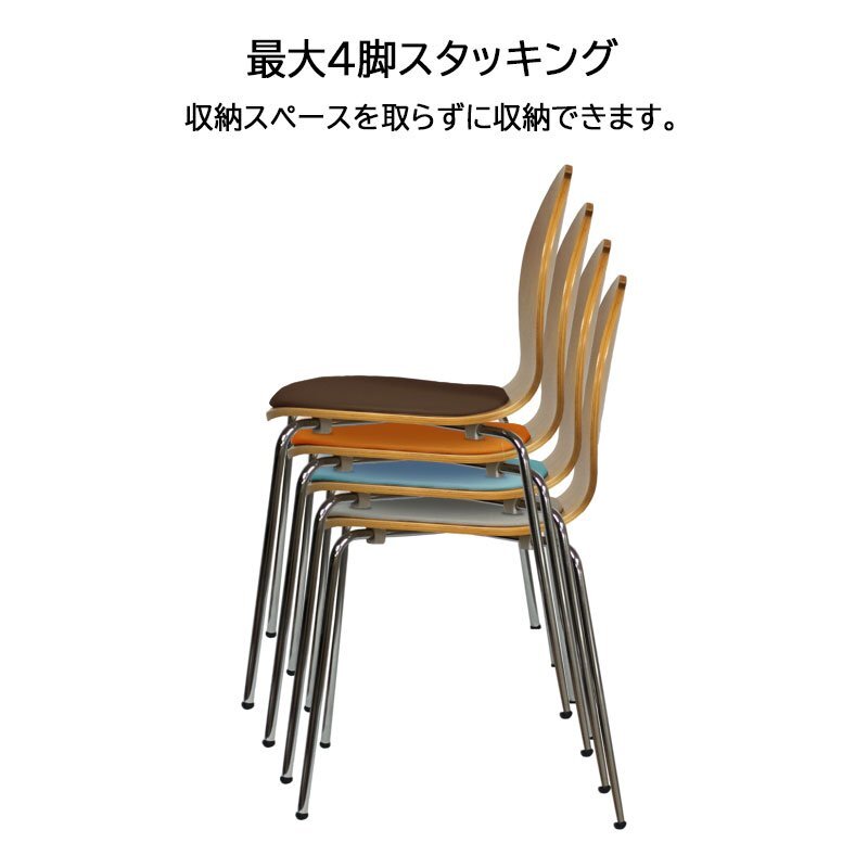 ミッドセンチュリーテイストの曲木とクッションのスタッキングチェア