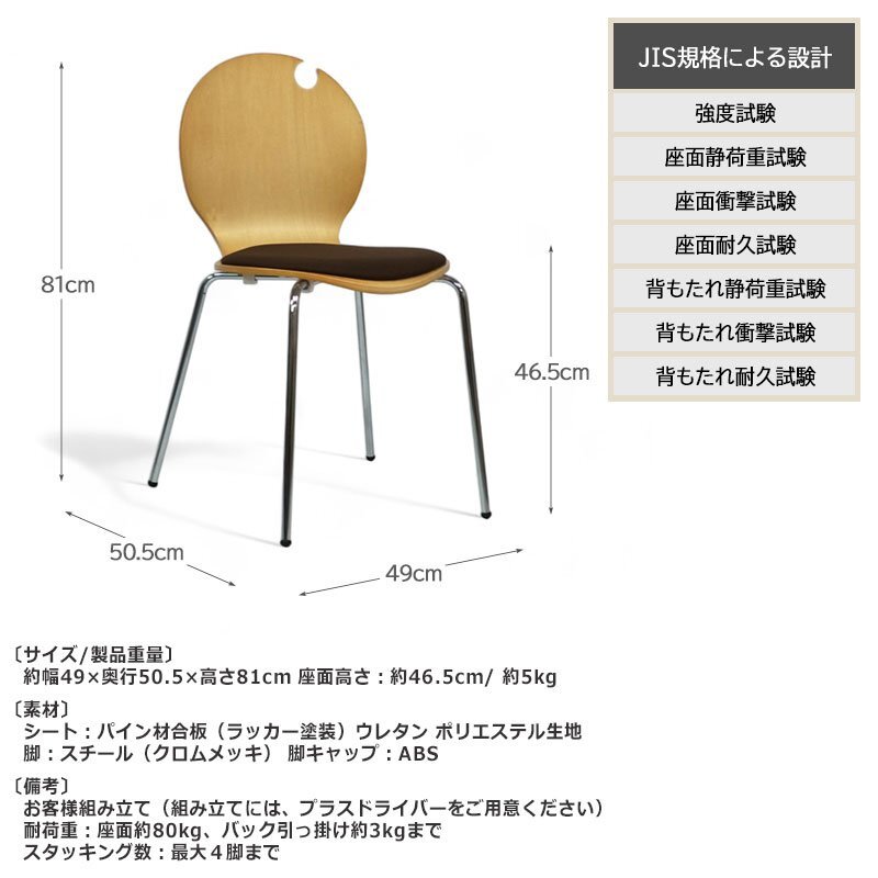 背・座:パイン合板(ラッカー塗装)、ウレタン、ポリエステル生地