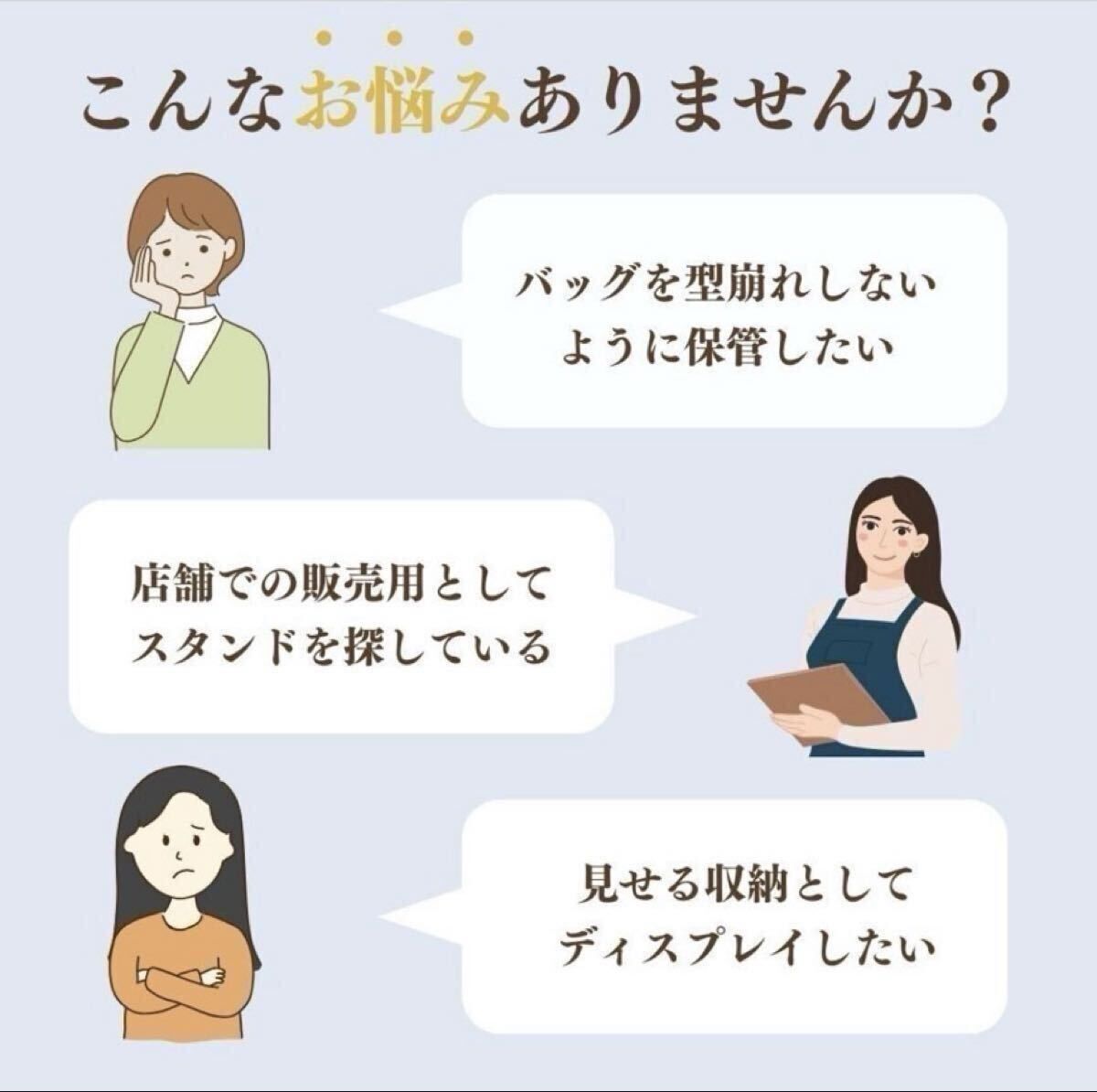 ◎このバックスタンドは型崩れを防止し、大切なアイテムをキレイに飾れる便利なスタンドです。