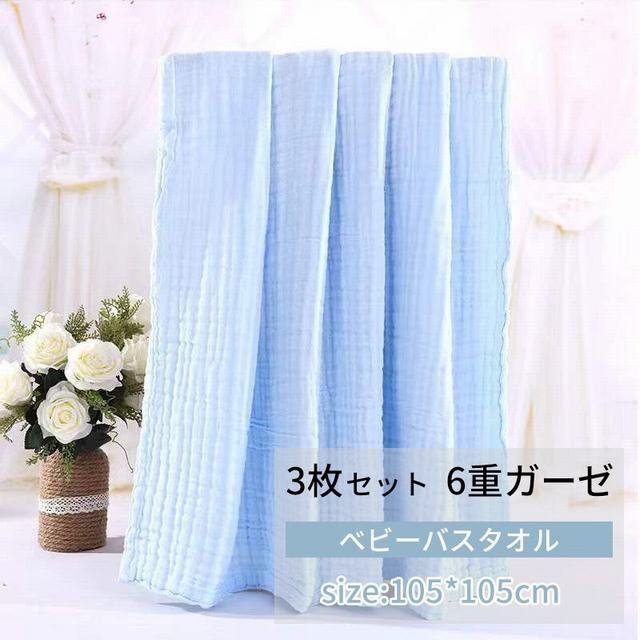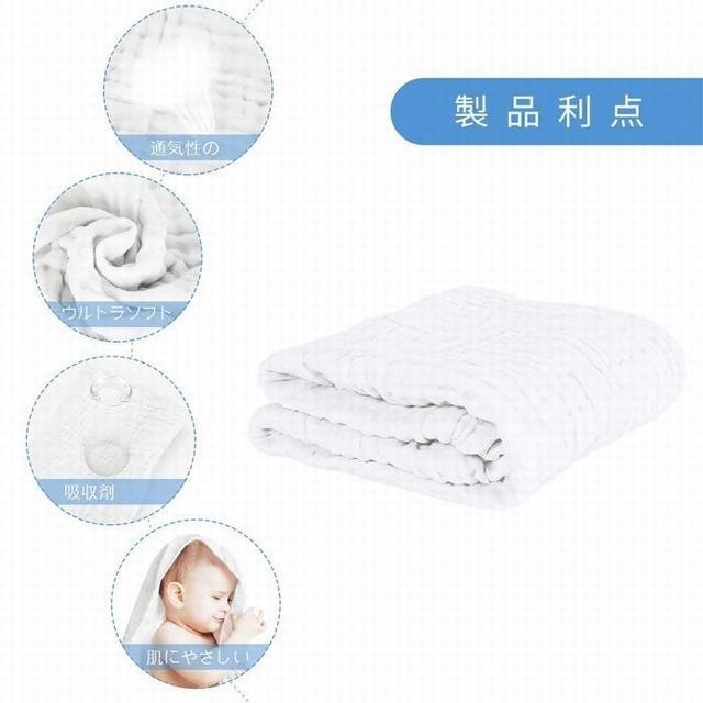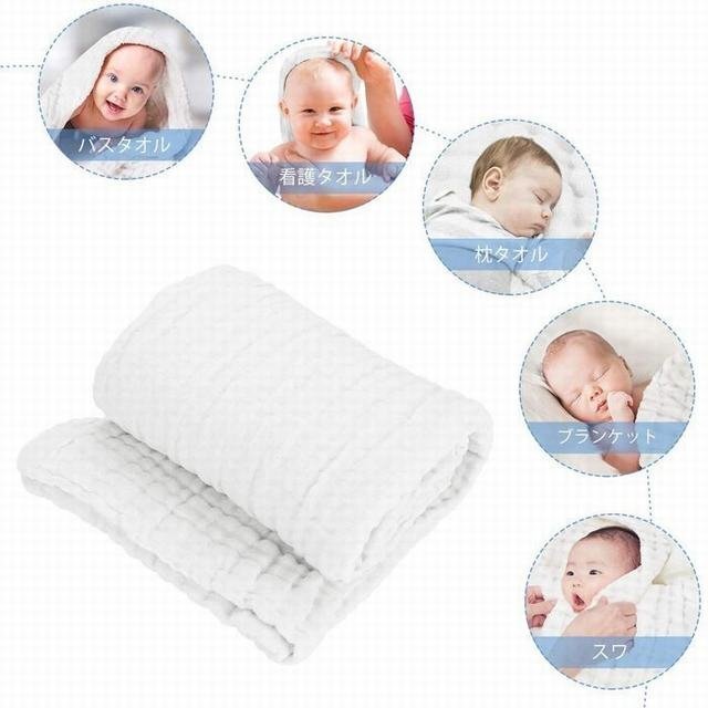 【素材】綿100%(6重ガーゼ) 【ずっと使えるサイズ】 105cm×105cmの正方形サイズは、赤ちゃんから大人までお使いいただけます。 ※ガーゼ生地の特性上、大きさに多少誤差がある場合がございます。 【ふんわり6重ガーゼ】 大切な赤ちゃんに使うものだから、柔らかく心地よい肌ざわりにこだわりました。産後で敏感になっているママのお肌にも。 【優しい綿100%】 素材は、もちろん綿100%。吸水性に優れている素材なので、水分をしっかり吸収してくれます。ホワイトも蛍光増白剤を使っていない。 落ち着いたおしゃれなくすみカラーは、年齢や性別を問わずお使いいただけます。 【お洗濯も楽々】 通気性?速乾性に優れているので一般的なバスタオルに比べ早く乾きます。 6重ガーゼタオルは、洗うたびに空気を含んでふっくら。使い込むほどに柔らかく肌になじみます。